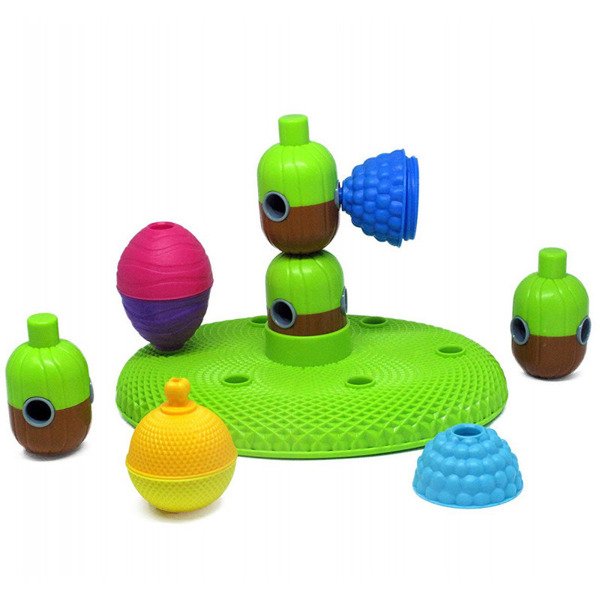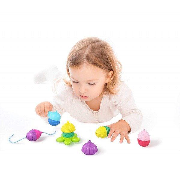 Wyspa Kreatywności marki Lalaboom dostarcza wiele zróżnicowanych wrażeń dotykowych ze względu na różne faktury poszczególnych elementów. Zabawka daje możliwość ćwiczenia ruchów obrotowych nadgarstka. Rozwija chwyt pęsetkowy (przeciwstawienie kciuka palcowi wskazującemu) i precyzyjne ruchy ręki przy nawlekaniu (rozwija małą motorykę i koordynację wzrokowo-ruchową). Zestaw kulko - klocków rozwija kreatywność dziecka poprzez eksperymentowanie z różnymi układami klocków, wymyślanie nazw powstałych konstrukcji. Rozwija pojęcie relacji przestrzennych (przymocowanie kulko-klocków u góry, na dole, z przodu, bądź z tyłu).
