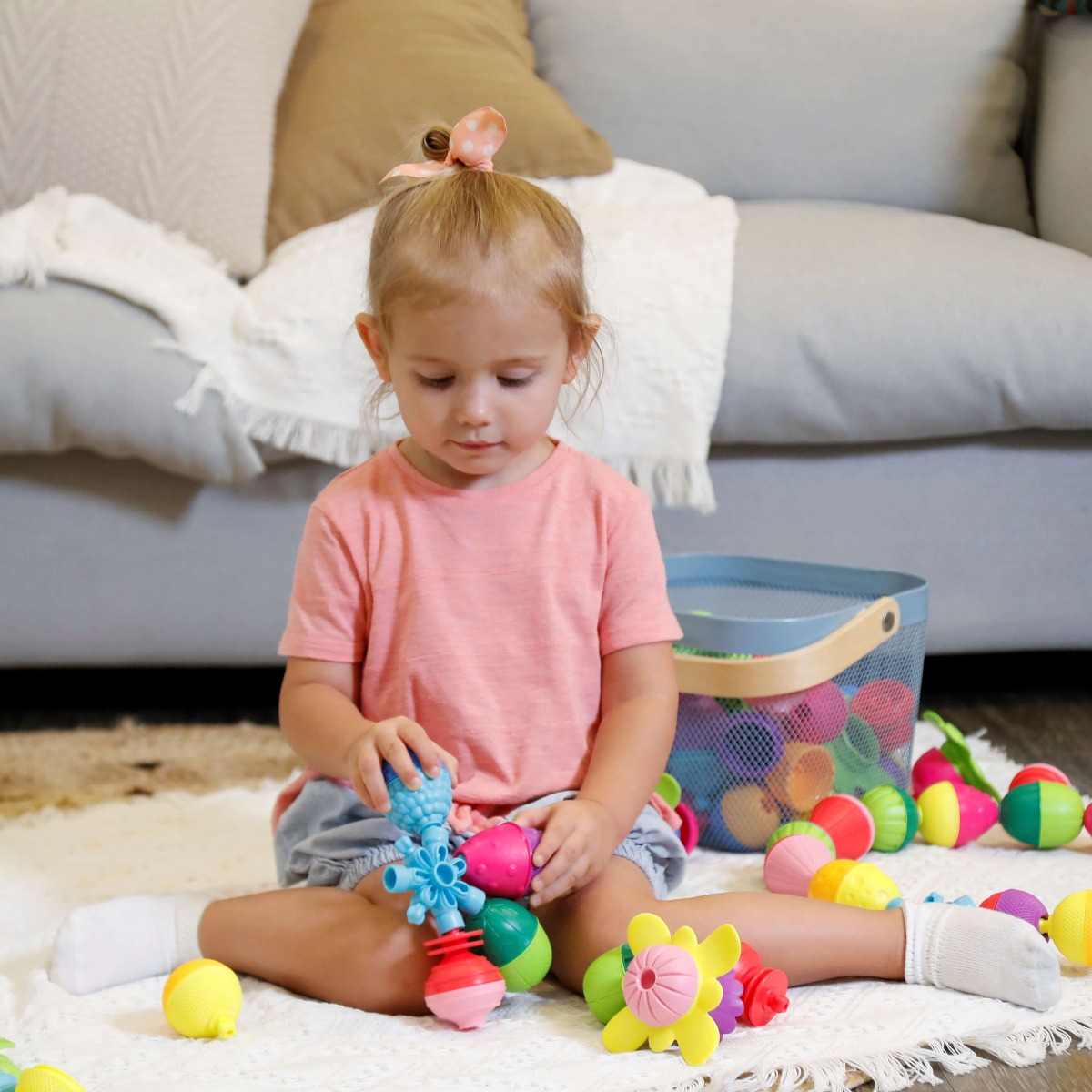 Zestaw dostarcza wiele zróżnicowanych wrażeń dotykowych ze względu na różne faktury poszczególnych elementów, daje możliwość ćwiczenia ruchów obrotowych nadgarstka, rozwija chwyt pęsetkowy (przeciwstawienie kciuka palcowi wskazującemu) i precyzyjne ruchy ręki przy nawlekaniu (rozwija małą motorykę i koordynację wzrokowo-ruchową),wspiera ćwiczenie koordynacji wzrokowo-ruchowej. Dzięki różnorodnej strukturze, dostarczają szereg możliwości rozwoju w postaci rozwoju manualnego, poznanie różnorodnych struktur, rozwija zmysł dotyku, koordynację oko-ręka, rozwój intelektualny.