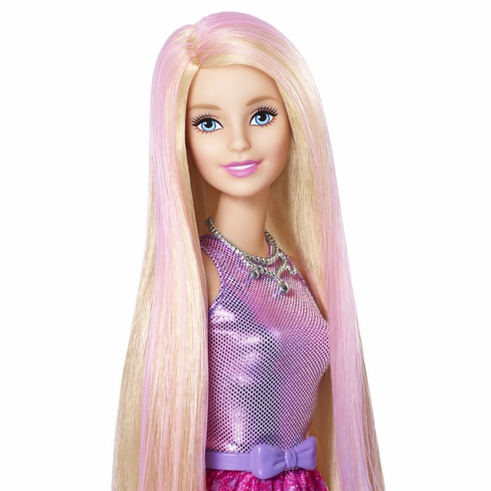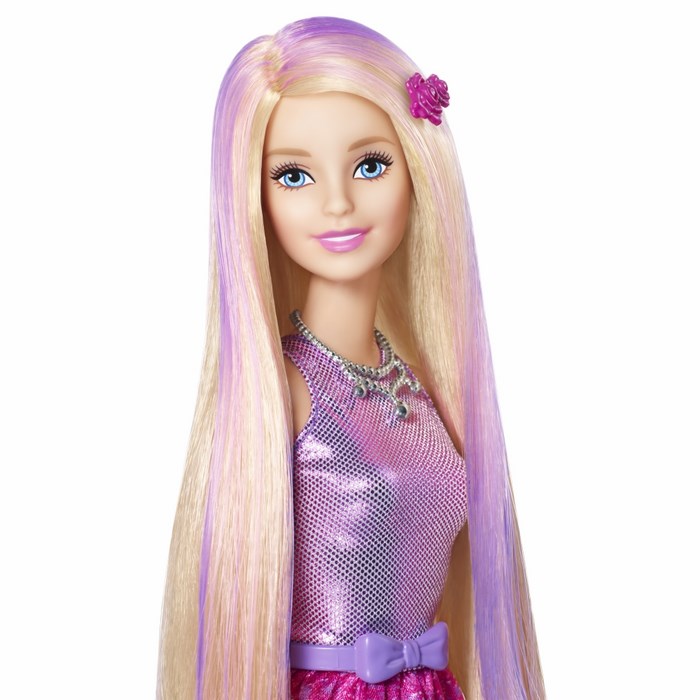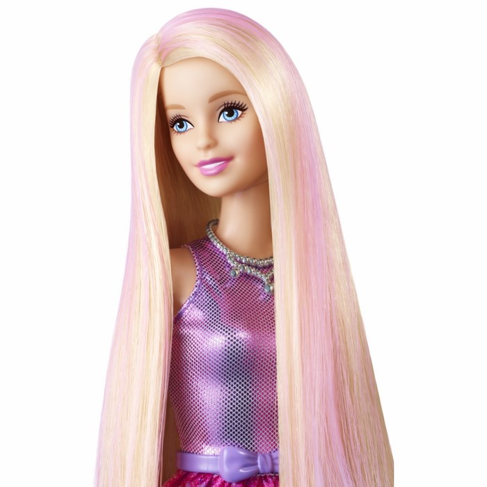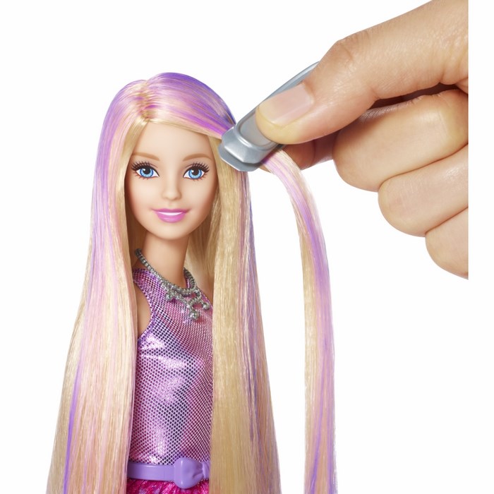 Lalka Barbie® uwielbia zmieniać kolor włosów, a teraz może robić to za pomocą samej wody! Dziewczynki pokochają stylizowanie włosów Barbie®, które błyskawicznie zmieniają kolor. Napełnij wodą stylowe różowe naczynie, zanurz w wodzie srebrzysty aplikator z gąbeczką i przesuń go po niesamowicie długich włosach Barbie®, aby jej piękne różowe pasemka zmieniły kolor na intensywnie fioletowy.