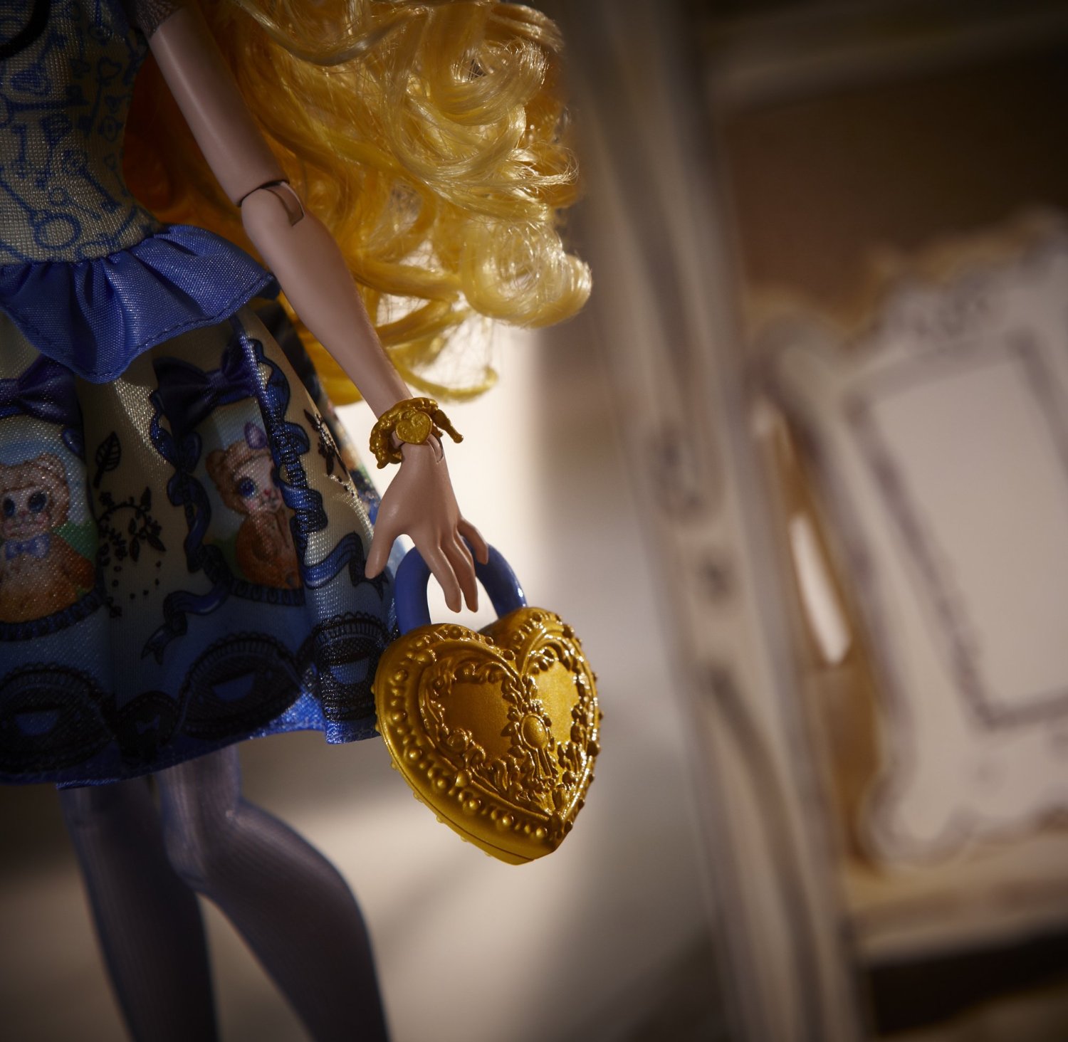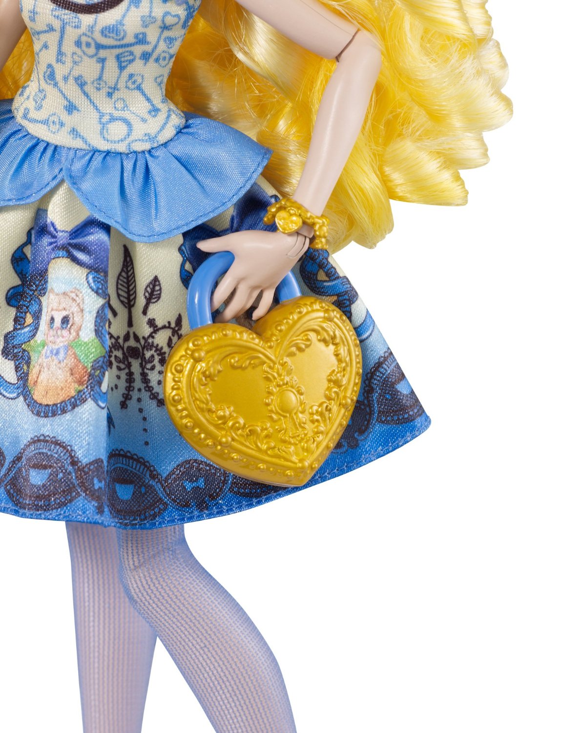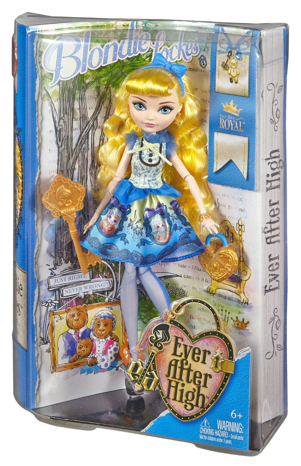 Blondie Lockes jest córką Złotowłosej z bajki Trzy Misie. Należy do grupy Royalsów, jest lekko szalona, bardzo towarzyska i nigdy nie rozstaje się ze swoim MirrorPadem. To właśnie za pomocą tego gadżetu prowadzi bloga, potrafi otworzyć wszystkie zakluczone drzwi i wiecznie, bez wiedzy przyjaciół, coś od nich pożycza. Lalka ubrana jest w niebieską, krótką sukienkę, rajstopy oraz czarno – brązowe buty na wysokim obcasie. Góra sukienki posiada delikatny wzór w klucze, które nawiązują do przypadłości bohaterki oraz zakończona jest błękitnym tiulem. Dodatkowo lalka posiada uroczą, złotą torebkę w kształcie serca a także piękną, złotą biżuterię: kolczyki, pierścionek i bransoletkę. Na głowie Blondie znajduje się niebieska opaska w kształcie kokardy.