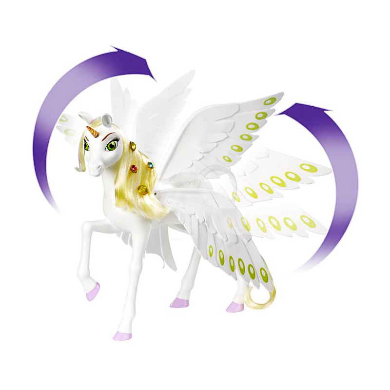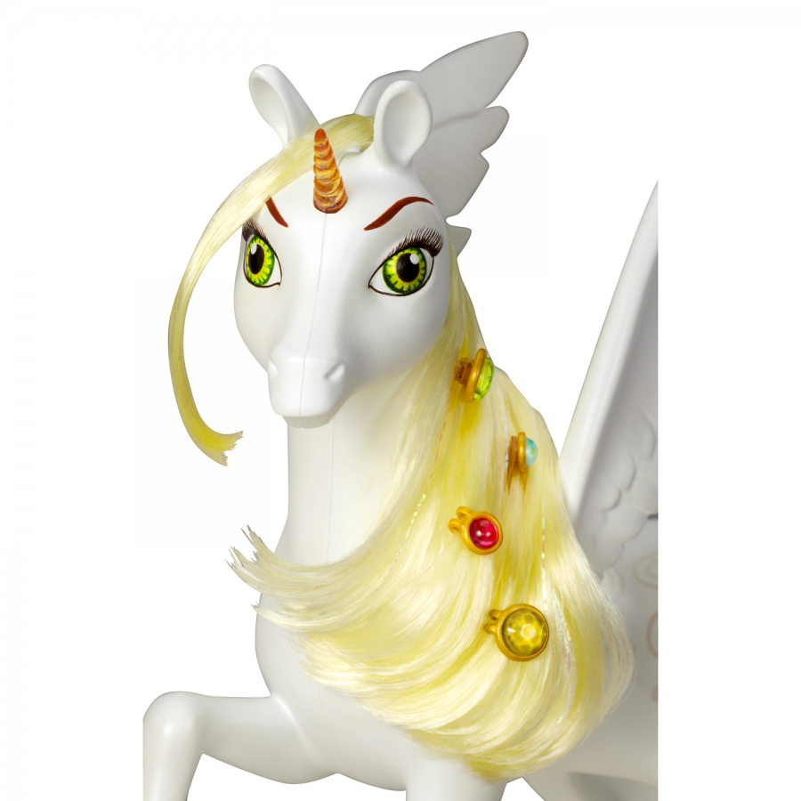 W magicznej krainie Centopii Mia zaprzyjaźnia się z Onchao, wyjątkowym jednorożcem o niezwykłych zdolnościach. Układaj jego piękną grzywę i ogon, używając do tego znajdujących się w zestawie ozdób do włosów. Jego charakterystyczny złoty róg, zielone oczy i fioletowe kopytka przypomną Ci ukochane serialowe sceny i pozwolą przeżywać magiczne przygody na nowo.