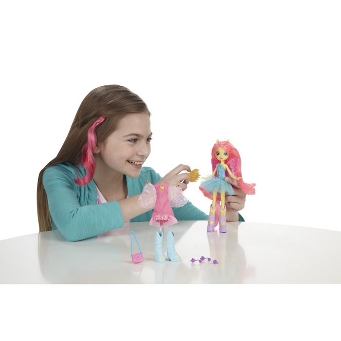 My Little Pony Equestria Girls uwielbiają pokazywać się w swoich najnowszych ubraniach! Każda lalka z akcesoriami ma dwa piękne stroje w zestawie i dwie pary pasujących do stroju, wyjątkowych butów. Lalki mogą zginać łokcie i kolana, dzięki czemu można je ustawić w dowolnych pozach znanych z wybiegów.
