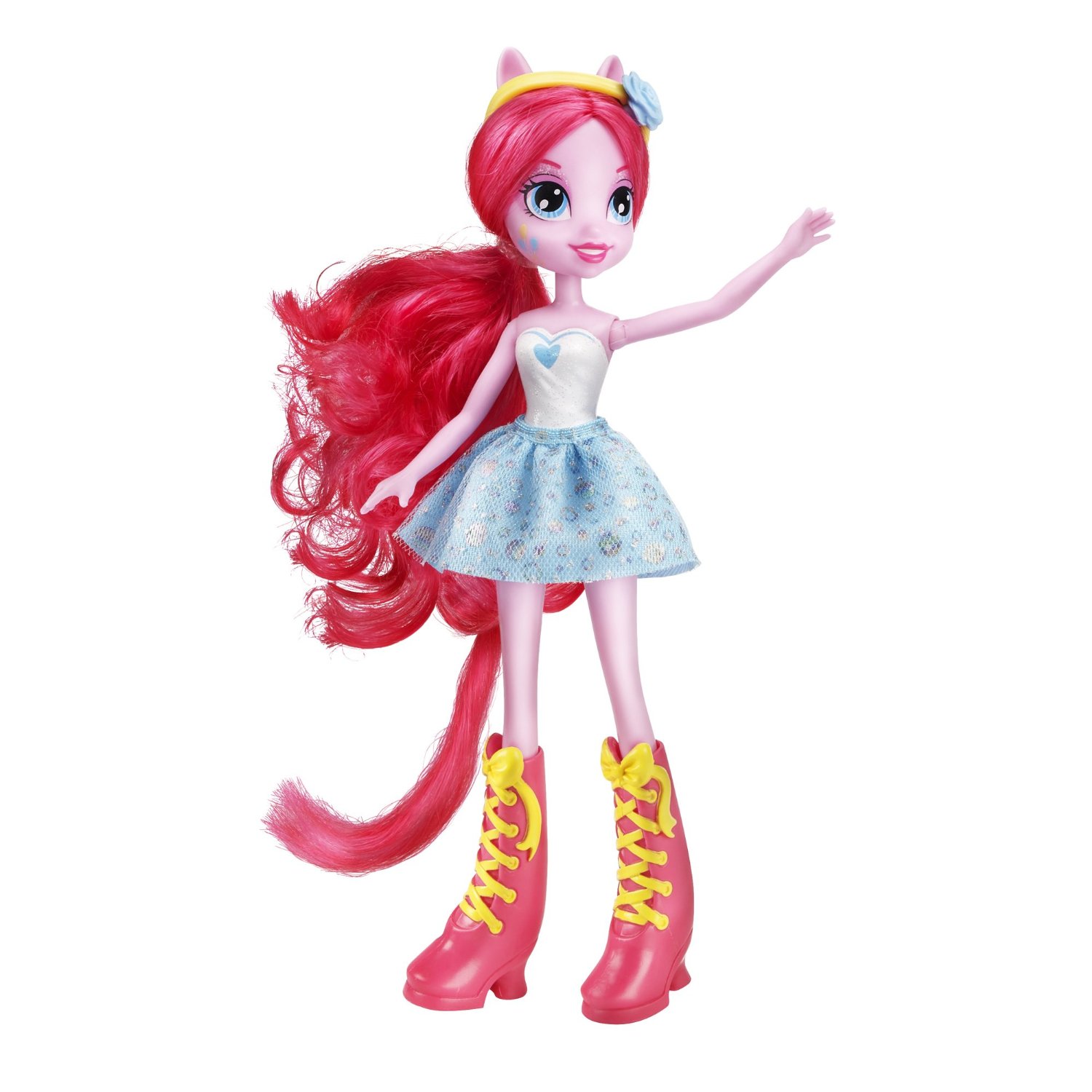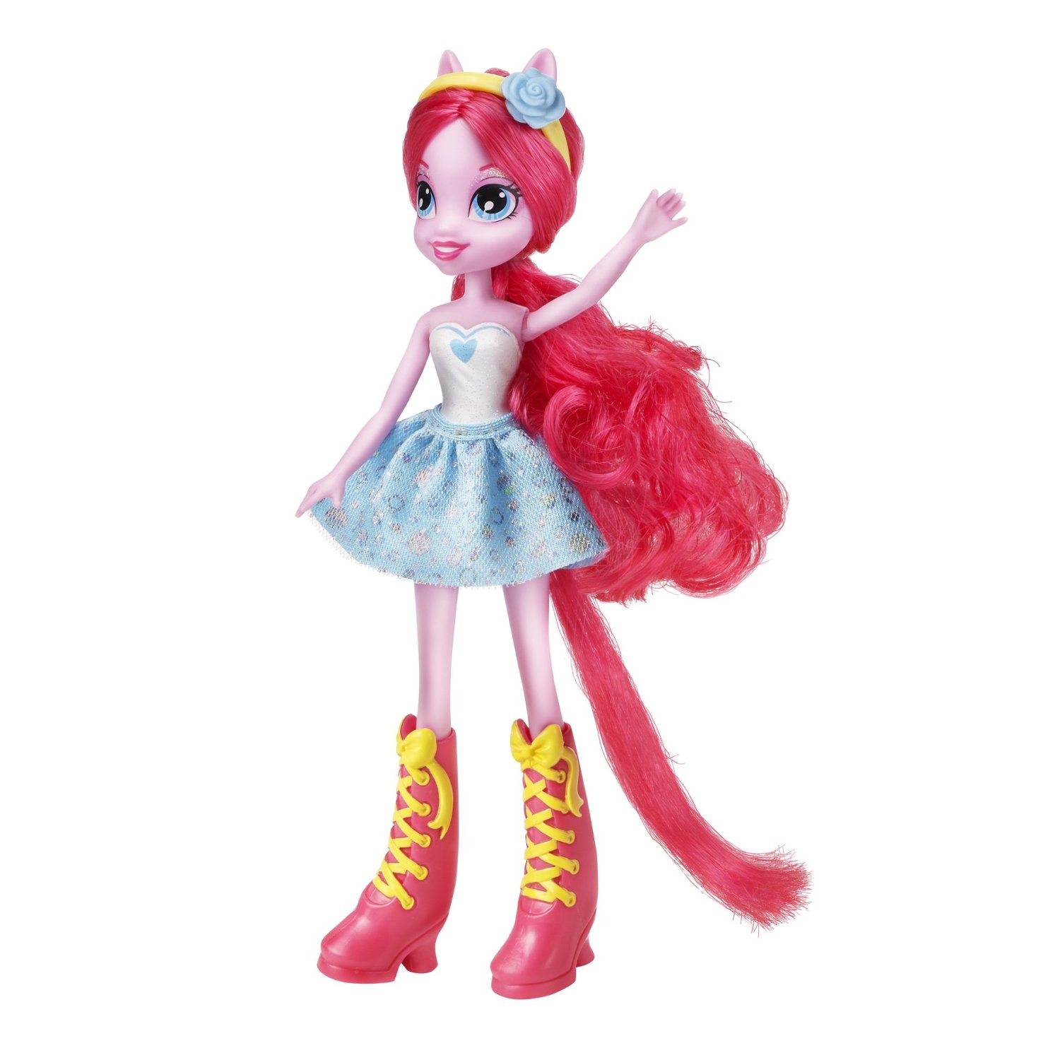 Każda lalka ma swój znaczek na policzku, nawiązujący do jej kucykowego alter ego. Ponadto ma zdejmowaną, modną spódniczkę i buty, charakterystyczne dla danej postaci - dziewczynki będą uwielbiały zamianę stylów pomiędzy swoimi ulubionymi postaciami. Pinkie Pie nosi ubrania idealne na imprezę. Każda z My Little Pony Equestria Girls ma również kartę ucznia Canterlot High.