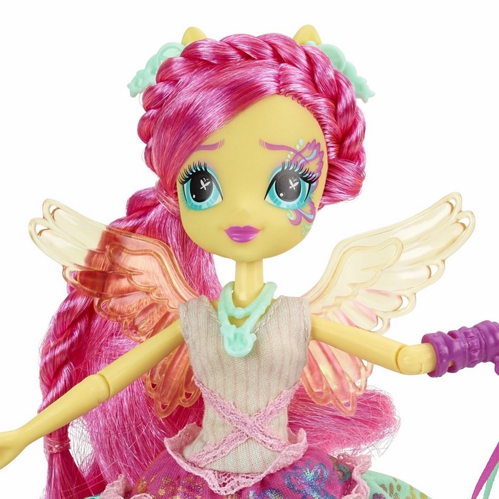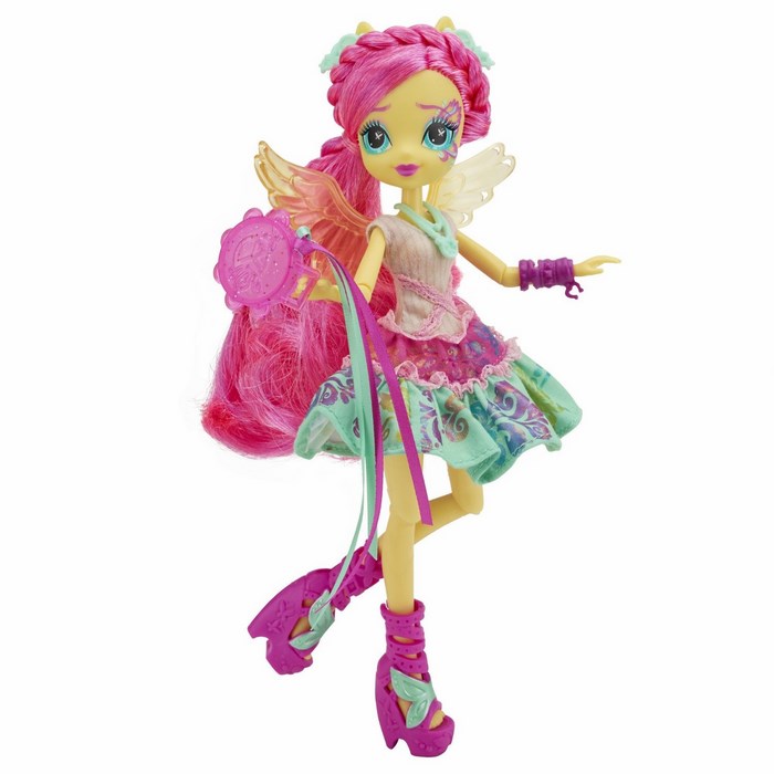 Lalki Equestria stylowe fryzury to ekipa modnych przyjaciółek: Twilight Sparkle, Pinkie Pie, Rainbow Dash, Rarity, Fluttershy oraz Applejack. Fluttershy ma unikalną, supermodną fryzurę dla podkreślenia rockowego stylu. Przyjaciółki mają różny styl ale każda jest ikoną rocka i świetnie razem wyglądają na scenie.