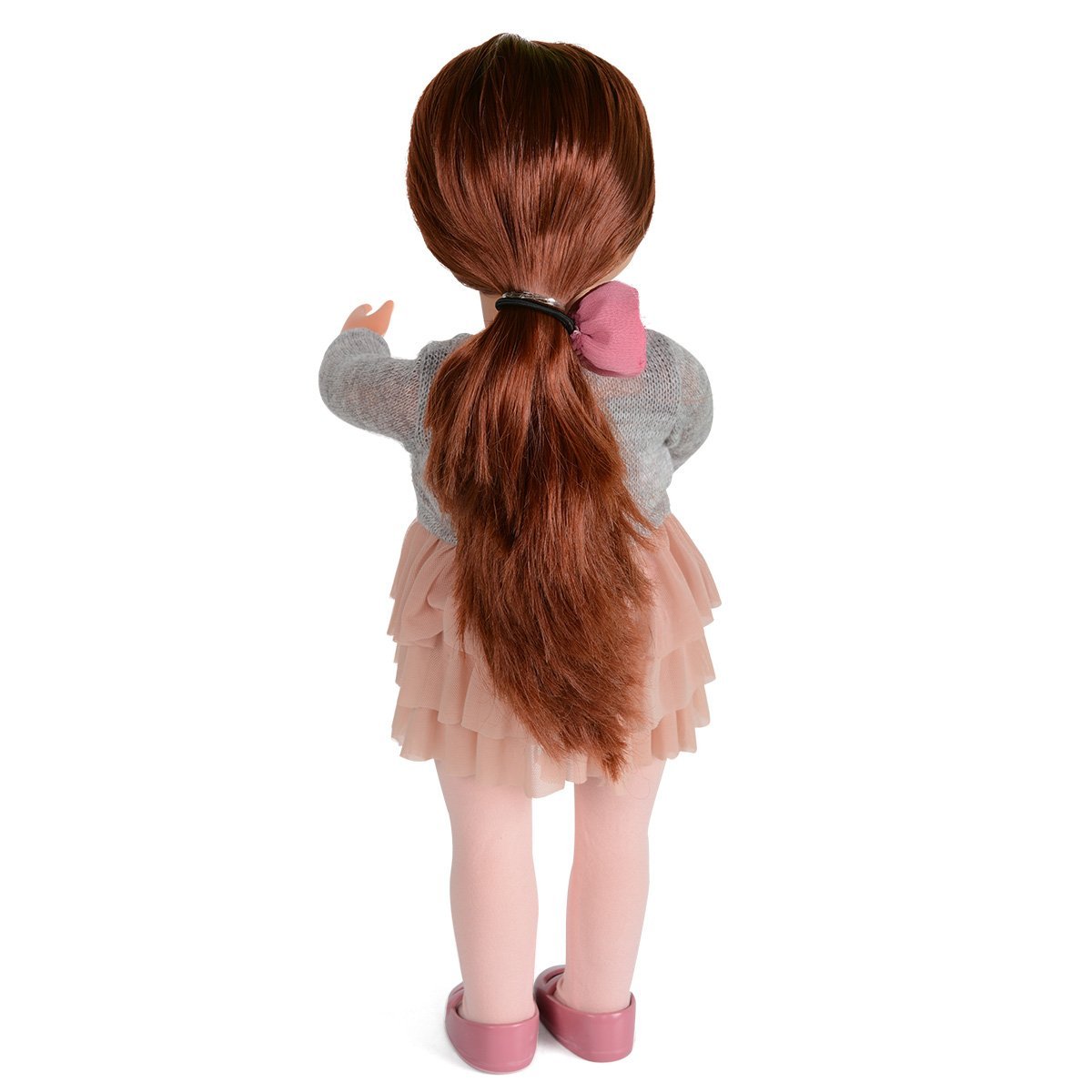 Lalka Ayla jest piękną szatynką o zielonych oczach. Jej delikatną urodę podkreślają: spódniczka z falbankami, włosy spięte falbanistą gumką.