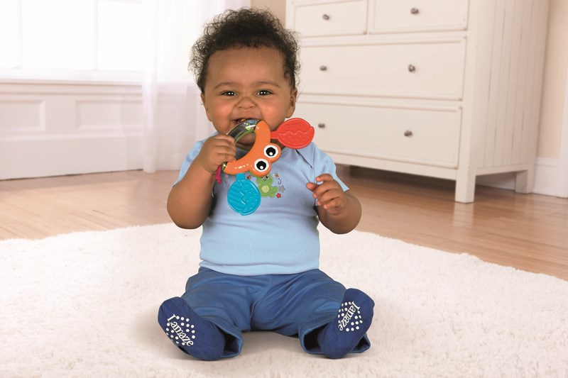 Wesoły krab Jack to najlepszy przyjaciel ząbkującego maluszka – cały jest gryzaczkiem. Dodatkowo wyposażony jest w różne tkaniny oraz grzechotkę.