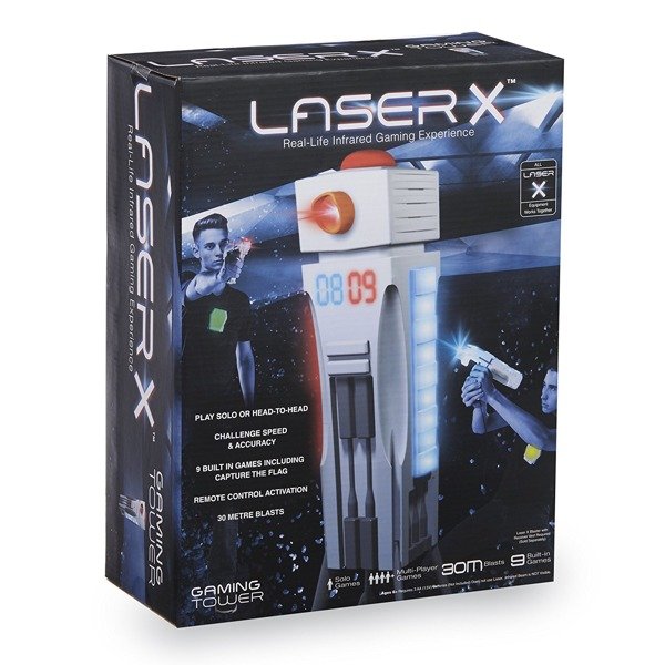 Odkryj nowy wymiar rozrywki Laser X z wieżą Laser X Tower. Gracze mogą sprawdzić swoje umiejętności, szybkość i celność w wyzwaniach dla jednego gracza, rywalizować między sobą, lub spróbować swoich sił w trybie dla wielu graczy. Kolorowe efekty świetlne i licznik punktów. Opakowanie zawiera jedną wieżę Laser X Gaming Tower. Wieża daje graczowi możliwość czerpania przyjemności z rozgrywki Laser X nawet gdy w pobliżu nie ma innych graczy, którzy mogliby rzucić wyzwanie. Zestaw oferuje 8 emocjonujących trybów rozgrywki i 2 wyzwania specjalne.