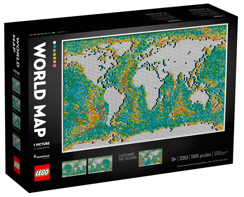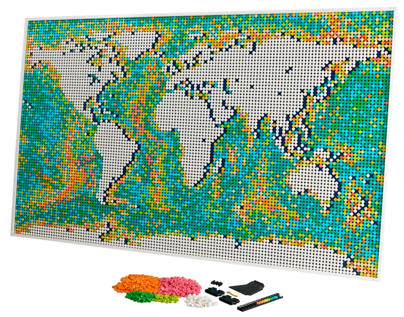 Marzysz o zbudowaniu własnej mapy świata? Ogromny zestaw LEGO® Art 31203 Mapa świata pomoże Ci to zrobić. Dzięki największemu w historii firmy LEGO zestawowi zbudujesz jedną z trzech kolorowych map.