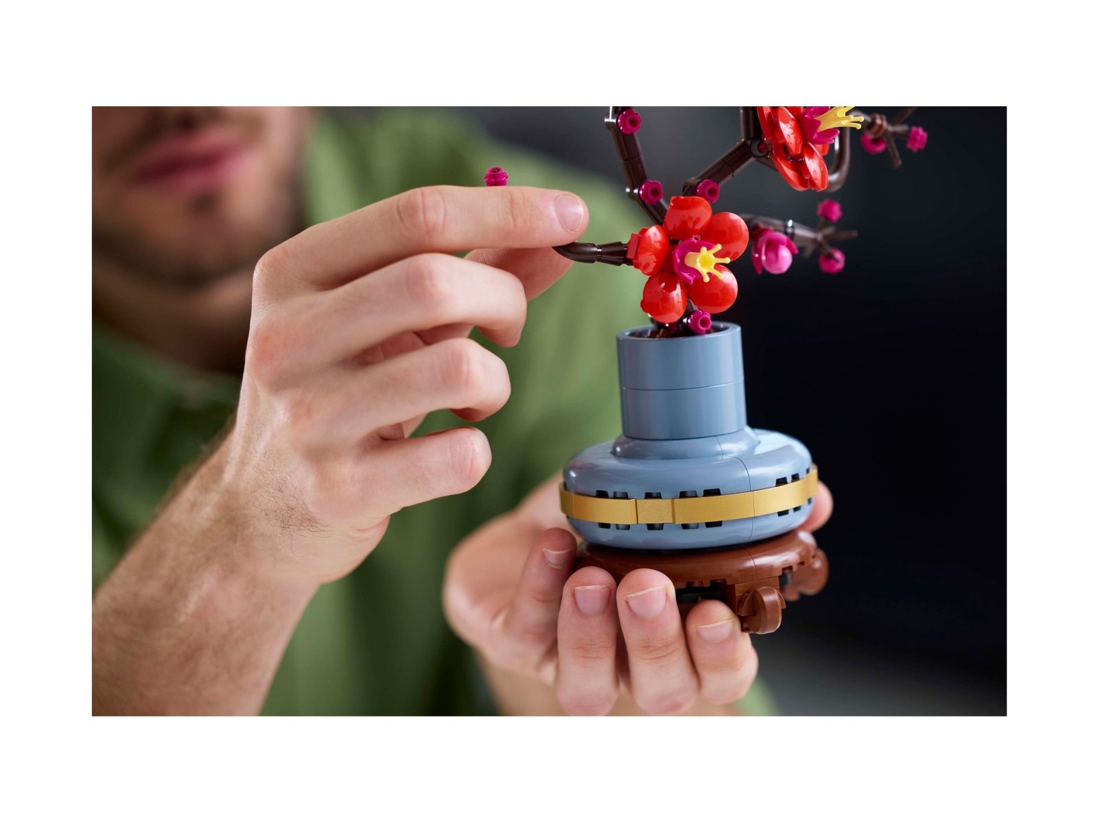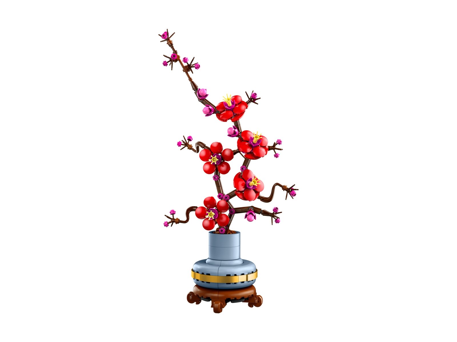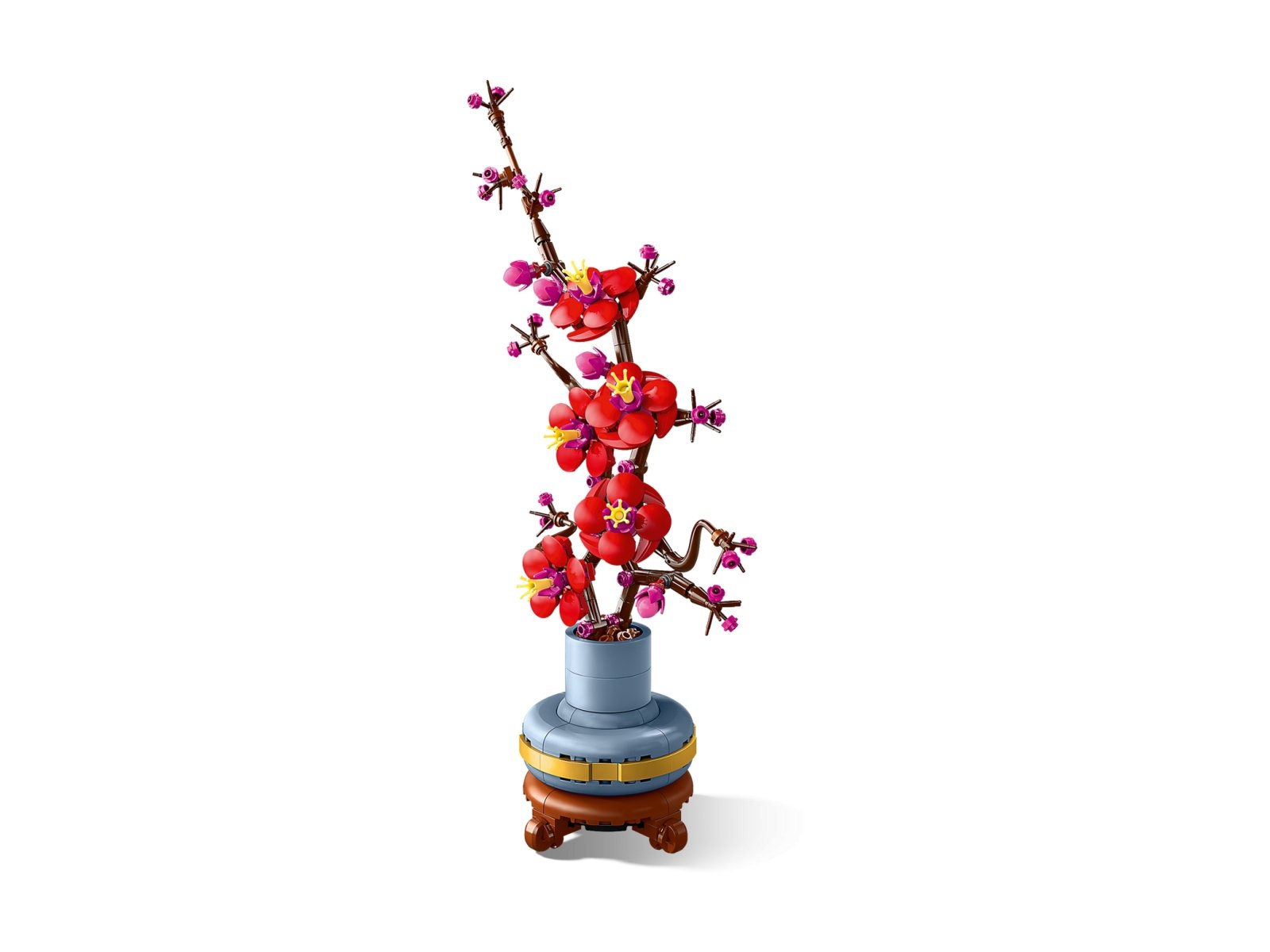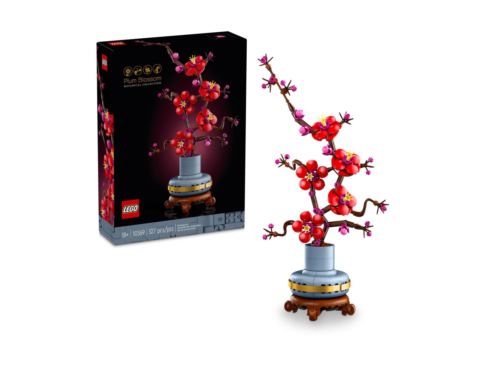 Odpręż się przy zestawie dla dorosłych LEGO® Icons Kwiat śliwy. Śliwa to popularny motyw w sztuce tradycyjnej, zazwyczaj malowany tuszem. To także element klasycznego artystycznego motywu czterech pięknych roślin, znanego jako „czworo szlachetnych”. Rozpocznij ciekawy projekt lub podaruj ukochanej osobie ponadczasową kompozycję kwiatową jako prezent na każdą okazję. Ta szczegółowa replika odzwierciedla elegancję zimowej rośliny z drzewną łodygą i żywymi czerwonymi i różowymi kwiatami. Jest ona umieszczona w pastelowej niebieskiej doniczce ze złotą obwódką i cokołem z efektem drewna. Model jest prosty w budowie, gwarantuje satysfakcję z budowania i stanowi piękną, łatwą w pielęgnacji kwiatową dekorację do domu i biura.