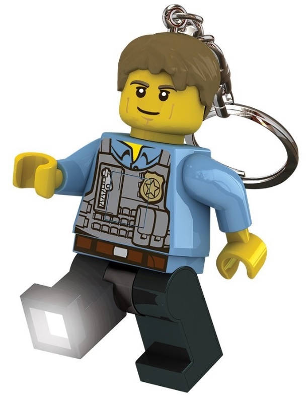 Chase, bohater LEGO City, oferuje Ci swoją pomoc, gdy próbujesz odnaleźć prawidłową drogę w ciemności. Wystarczy nacisnąć przycisk, a dzięki ledowemu światłu od razu znajdziesz zagubione przedmioty albo dziurkę od kluczy. Chwilowy przełącznik oszczędza energię. Brelok jest także doskonałym uzupełnieniem kolekcji LEGO City.