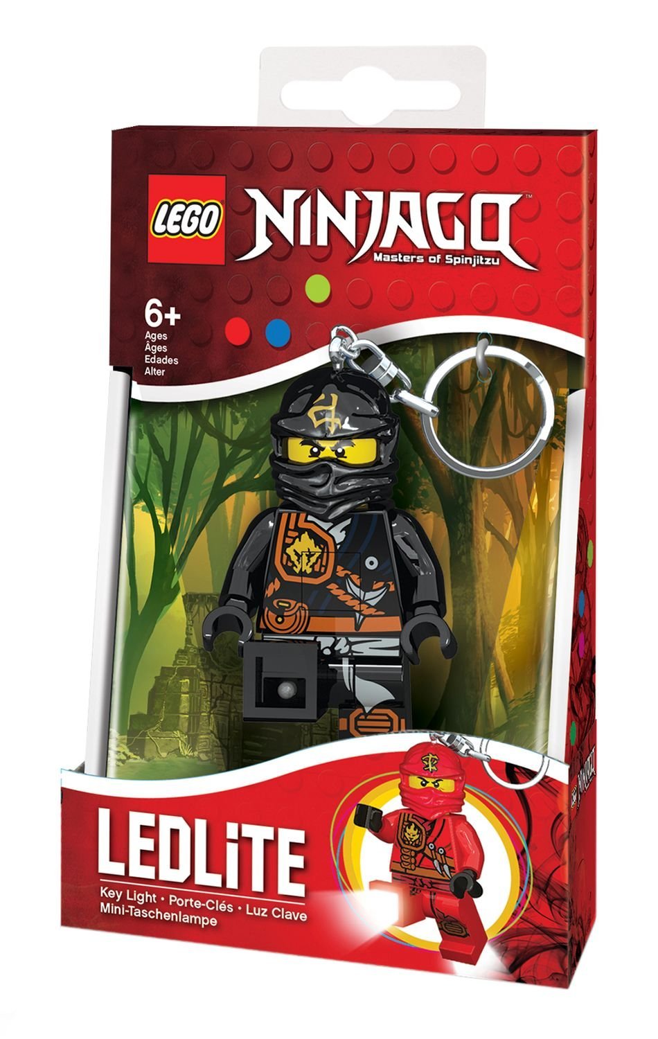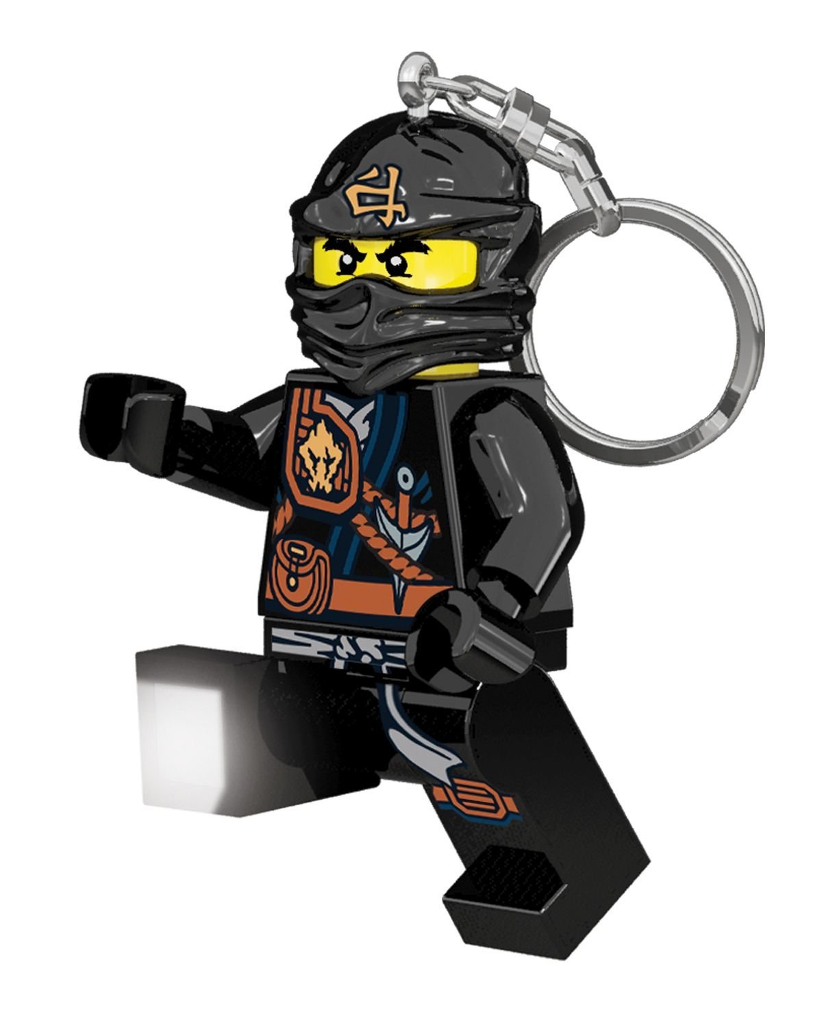 Cole, bohater Ninjago, oferuje Ci swoją pomoc, gdy próbujesz odnaleźć prawidłową drogę w ciemności. Wystarczy nacisnąć przycisk a od razu znajdziesz zagubione przedmioty albo dziurkę od kluczy. Chwilowy przełącznik oszczędza energię. Brelok jest także doskonałym uzupełnieniem kolekcji ninjago.