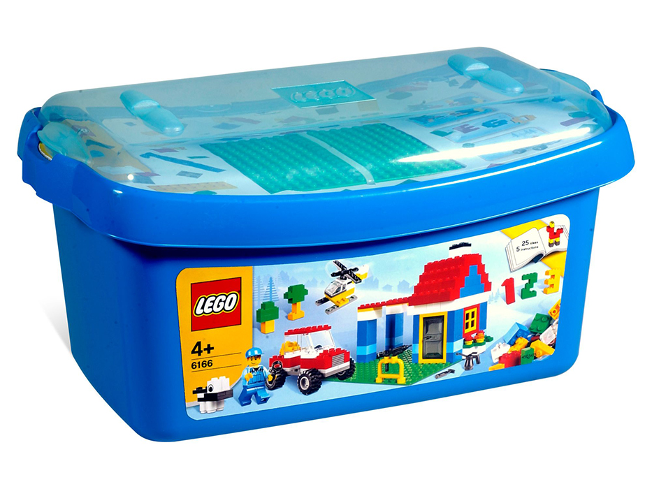 Lego Duży zestaw klocków 6166 to zestaw zwierający 405 różnorodnych elementów z których może powstać niezliczona ilość domków, pojazdów, postaci czy roślin. Wszystkie klocki umieszczone są w wygodnym niebieskim pojemniku.