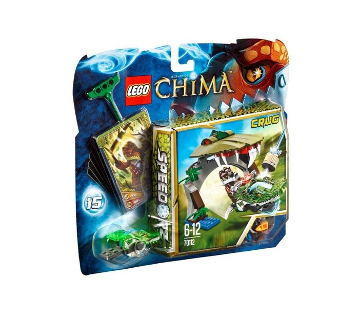 Pędź przez terytorium Krokodyli i schwytaj CHI, ale uważaj na krokodyli gryz! Posadź Cruga na krokodylim Speedorze, pociągnij linkę i popędź przez bazę krokodyli — zdobądź CHI, ale nie daj się złapać bramie w kształcie szczęki! Dołącz elementy dodatkowe, aby łatwiej złapać CHI szerszym Speedorem. Zestaw zawiera minifigurkę, 2 bronie, Speedora, linkę, elementy dodatkowe, 6 CHI i 5 kart do gry. Wypróbuj swoją celność i refleks w grze zręcznościowej dla jednej lub większej liczby osób.