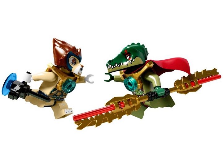 Na bagnach rozpoczyna się ostateczna walka. Leonidas i Lennox usiłują uciec na skuterach wodnych, unosząc CHI plemienia krokodyli, ale nie tak łatwo przechytrzyć księcia krokodyli — Craggera. Uruchom krokodylą łódź Craggera i ruszaj w pościg! Uruchom ogromną, kłapiącą paszczę, zadawaj ciosy ogonem i odpalaj rakiety zasilane CHI! Wezwij swojego kruczego sprzymierzeńca Rawzoma, aby śledzić złodziejskie koty z powietrza lub zaatakować ich z góry i odebrać im CHI! Potem wyślij zamaskowane miniłodzie i krokodyli śmigłowiec, aby zatrzymać nieprzyjaciół, nim opuszczą bagno.
