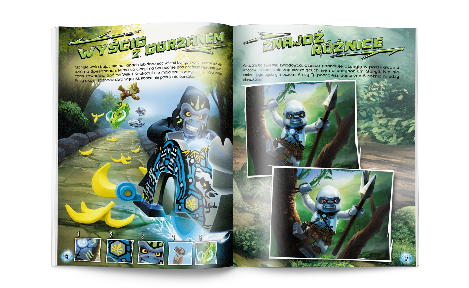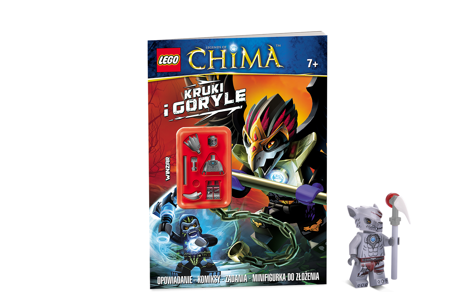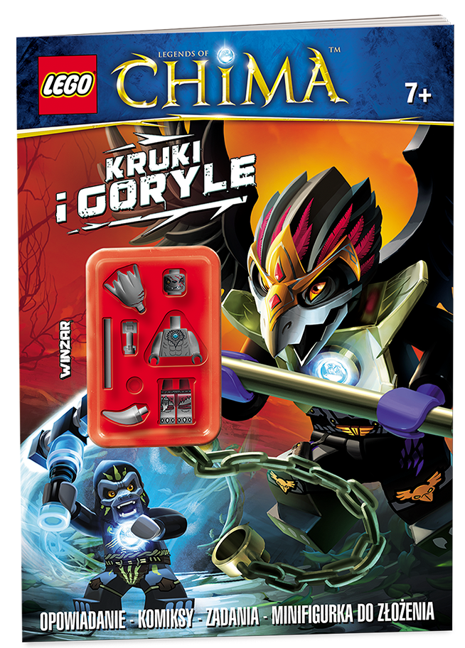 W książce znajdziesz pasjonujące opowiadanie Grega Farshteya „Pułapka na mechagoryla”, prezentacje bohaterów walczących plemion, łamigłówki, komiks, ciekawostki na temat krainy Chima, quiz oraz minifigurkę do samodzielnego złożenia.