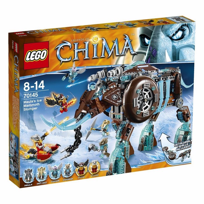 Pomóż Worrizowi i Razarowi odzyskać CHI, bawiąc się Mamucią lodową maszyną kroczącą Mauli z serii LEGO® Legends of Chima™, która wyposażona jest w odczepianą lotnię i 2 wystrzeliwane rakiety. Umieść Maulę na mostku kapitańskim, ruszaj trąbą i skorzystaj z lotni i wystrzel z niej rakiety. Wsiądź z Worrizem do jego pojazdu i podkradnij się do maszyny kroczącej