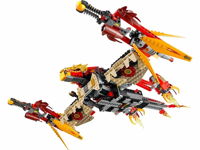Pomóż Flinksowi obronić świątynię z wieżyczki strzeleckiej i zasypać wrogów ognistymi bombami. Musisz działać szybko, zanim pojazd Tygrysów szablozębnych rozpruje mury świątyni swoimi potężnymi pazurami. Możesz też uruchomić tryb zasilania CHI, aby przekształcić część świątyni w wielkiego latającego Feniksa! Będzie on mógł zmierzyć się w powietrzu z wystrzeloną przez Tygrysy lotnią! Obroń niesamowitą Latającą ognistą świątynie Feniksów z serii LEGO® Legends of Chima™, która dzięki ognistemu CHI może zmienić się w latającego Feniksa zdolnego odeprzeć ataki Tygrysów szablozębnych.