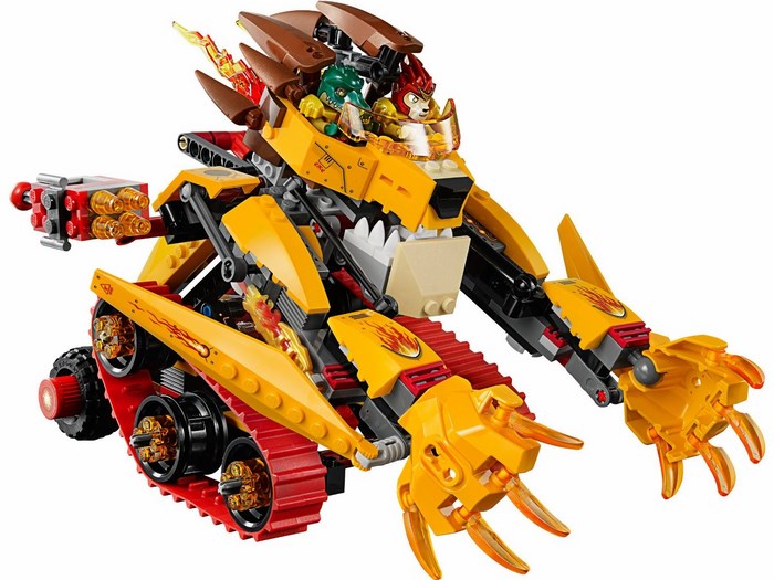 Pojazd dysponuje podwójnym kokpitem, wyrzutnią na 4 rakiety, ognistym CHI, przyłączem ognistego CHI, trybem zasilania ognistym CHI, tylnym uchwytem na CHI, narzędziami, uchwytami na broń zasilaną CHI, lwimi detalami, otwieranymi szczękami, ruchomymi kończynami i przezroczystymi elementami imitującymi ogień. Odegraj wyścig Mungusa i Craggera do CHI, bawiąc się zestawem ognisty pojazd Lavala z serii LEGO® Legends of Chima™.