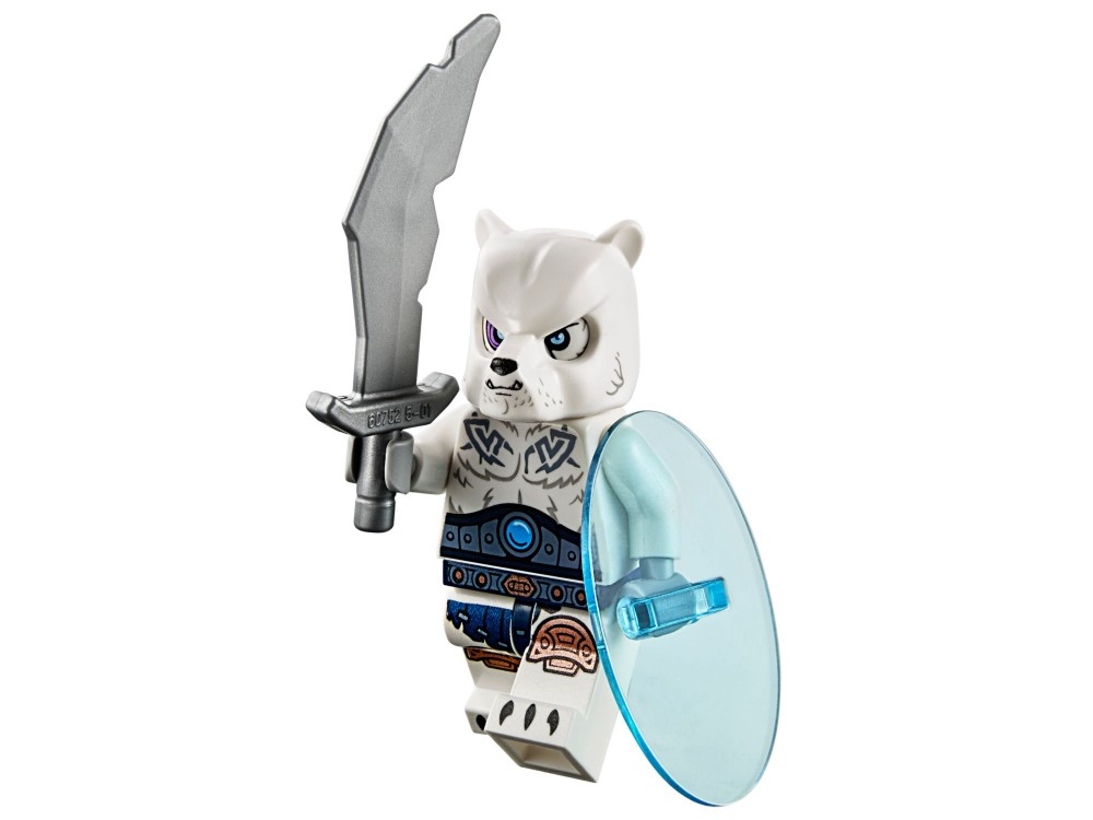 Zbuduj obóz najgroźniejszego plemienia całej krainy Chima! Oznacz teren sztandarem plemienia Lodowych Niedźwiedzi i poderwij obudzonych lodowych łowców na baczność. Zaczaj się na wroga za lodowymi ściankami, a potem zaatakuj miotaczem lodowych dysków i innymi rodzajami ekstra broni. Wojownicy grizzly nie zatrzymają się, póki cała kraina Chima nie pokryje się lodem!