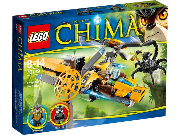 Lavertus zdobył CHI i stara się uciec przed Scutterem w swoim fantastycznym Dwuwirnikowym Helikopterze. Przypnij podwójne karabiny maCHInowe do boku helikoptera i umieść Lavertusa w fotelu pilota. Wciśnij włącznik, aby uruchomić wirniki wznieść się w powietrze. Uważaj jednak — Scutter ma Żądłomłot i skacze bardzo wysoko, aby zabrać CHI. Pojazd dysponuje dwoma wirnikami uruchamianymi przyciśnięciem, silnikiem zasilanym CHI, lwimi detalami i elementami przezroczystymi. Włącz mechanizm, aby uruchomić wirniki!