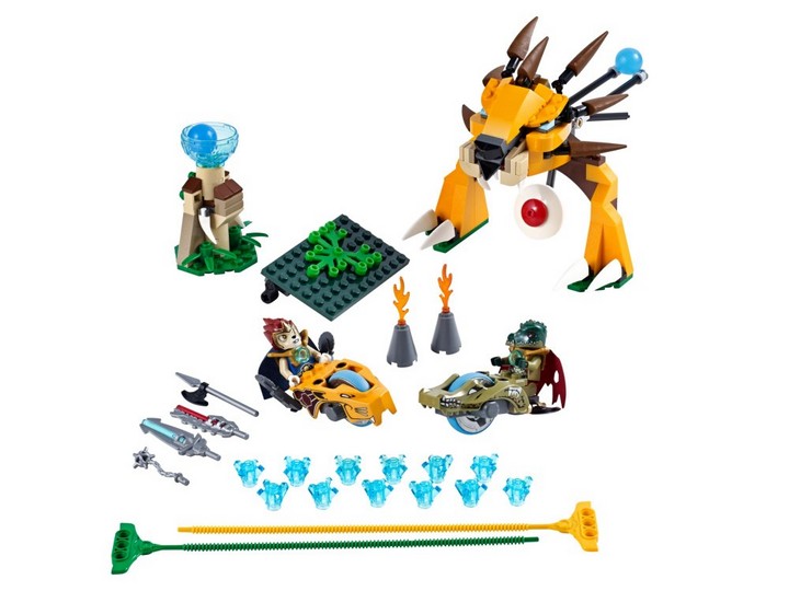 Głęboko na lwim terytorium Chimy plemiona zbierają się, aby odbyć najlepszy turniej Speedorów. Posadź Lavala i Craggera na Speedorach. Potem pociągnij za linkę, aby przemknąć przez lwią paszczę i uwolnić CHI! Rozpędź się na rampie i uderz w wieżę CHI, aby uwolnić jeszcze więcej energii! Dołącz elementy dodatkowe, aby poszerzyć Speedory i zwiększyć ich siłę bojową! Wypróbuj swoją celność i refleks w grze zręcznościowej dla jednej lub większej liczby osób!