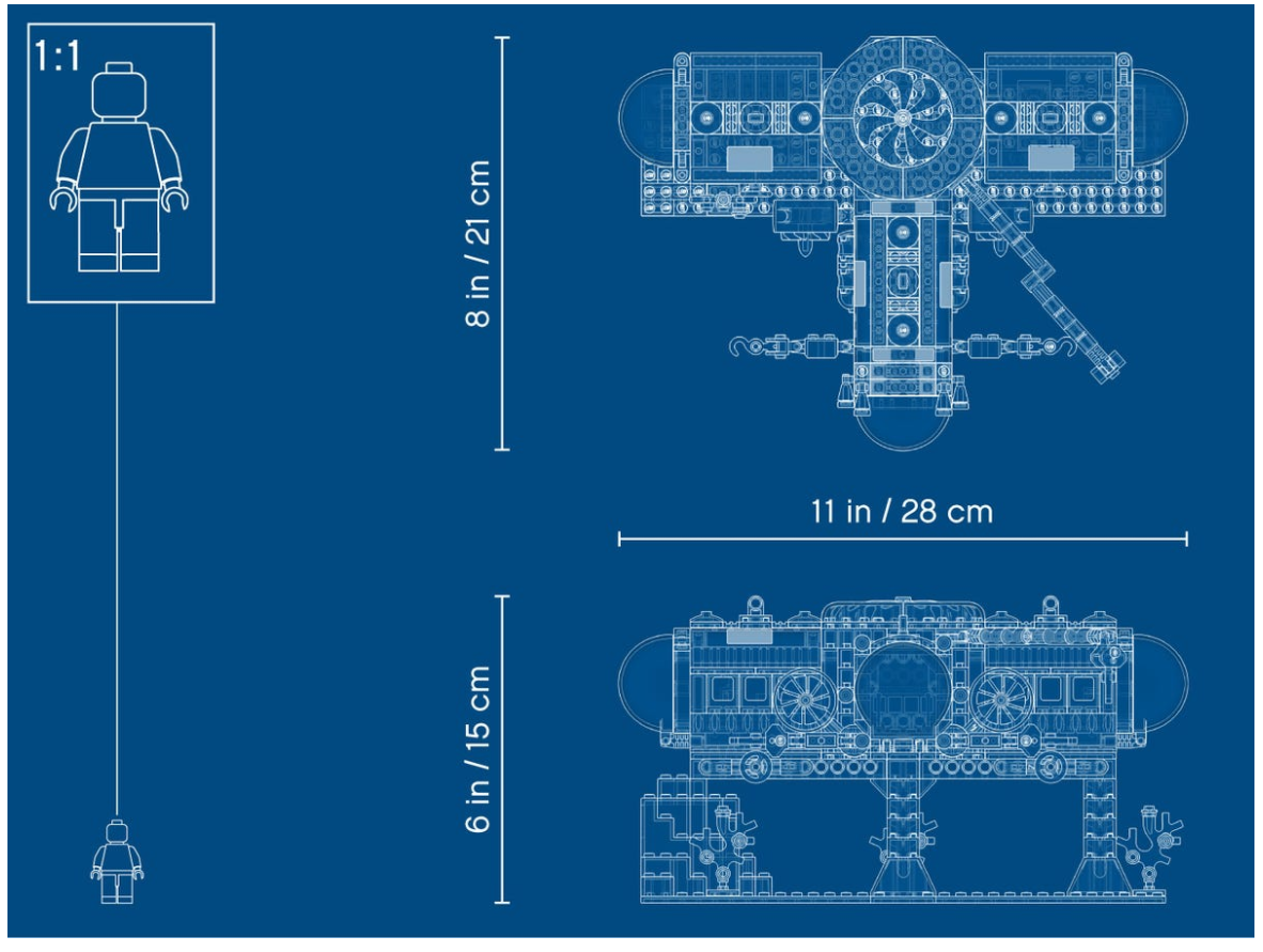 - Co jest w pudełku? Zabawkowa baza odkrywców z możliwością wymiany modułu mieszkalnego i badawczego, a także dokująca łódź podwodna, dron, figurki rekina i płaszczki oraz pięć minifigurek badaczy!