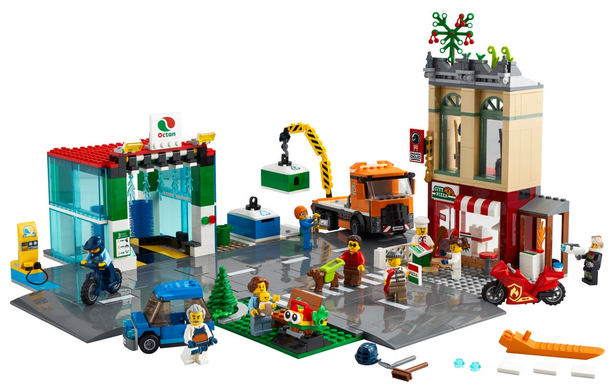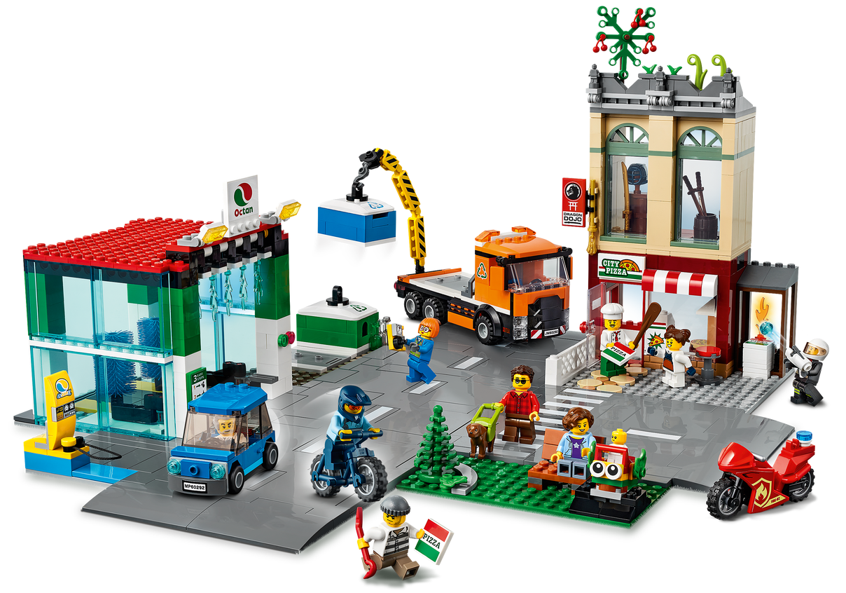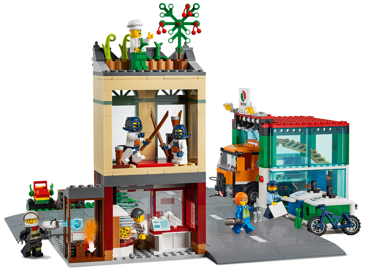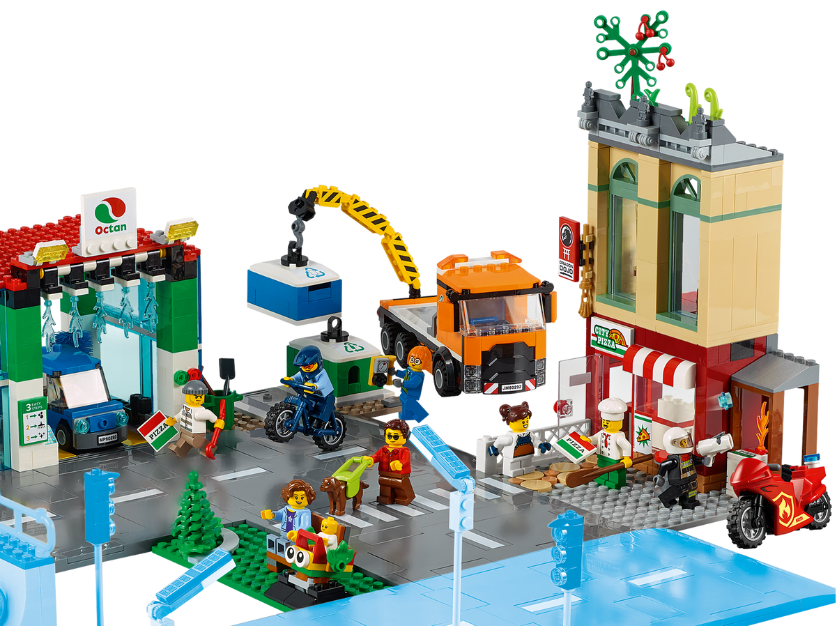 Wybierz się z wizytą do świata serialu LEGO® City Adventures — to możliwe dzięki wyjątkowemu zestawowi LEGO City Centrum miasta (60292). Jest tam pizzeria, stacja recyklingu, myjnia, stacja ładowania samochodów elektrycznych, dojo do ćwiczenia sztuk walki oraz park z atrakcjami dla dzieci, a do tego w pudełku czekają minifigurki postaci LEGO City. Zestaw zawiera też płytki ulic LEGO City, wiec zabawkę można łączyć z innymi zestawami, dowolnie rozbudowując miasto! Doskonały pomysł na prezent dlasześciolatków i starszych dzieci Zestaw zawiera łatwy poradnik budowania, ale dzieci mogą też użyć instrukcji Instructions PLUS w aplikacji LEGO Building Instructions — pozwalają one korzystać z funkcji przybliżania i obrotu widoku, dzięki którym każdy zostanie mistrzem konstrukcji. Kreatywny świat LEGO CityZestawy LEGO City są pełne budynków z rozmaitymi funkcjami, realistycznych pojazdów i ciekawych postaci, które zachęcają do budowania i samodzielnego wymyślania zabaw opartych na scenariuszach z prawdziwego życia.