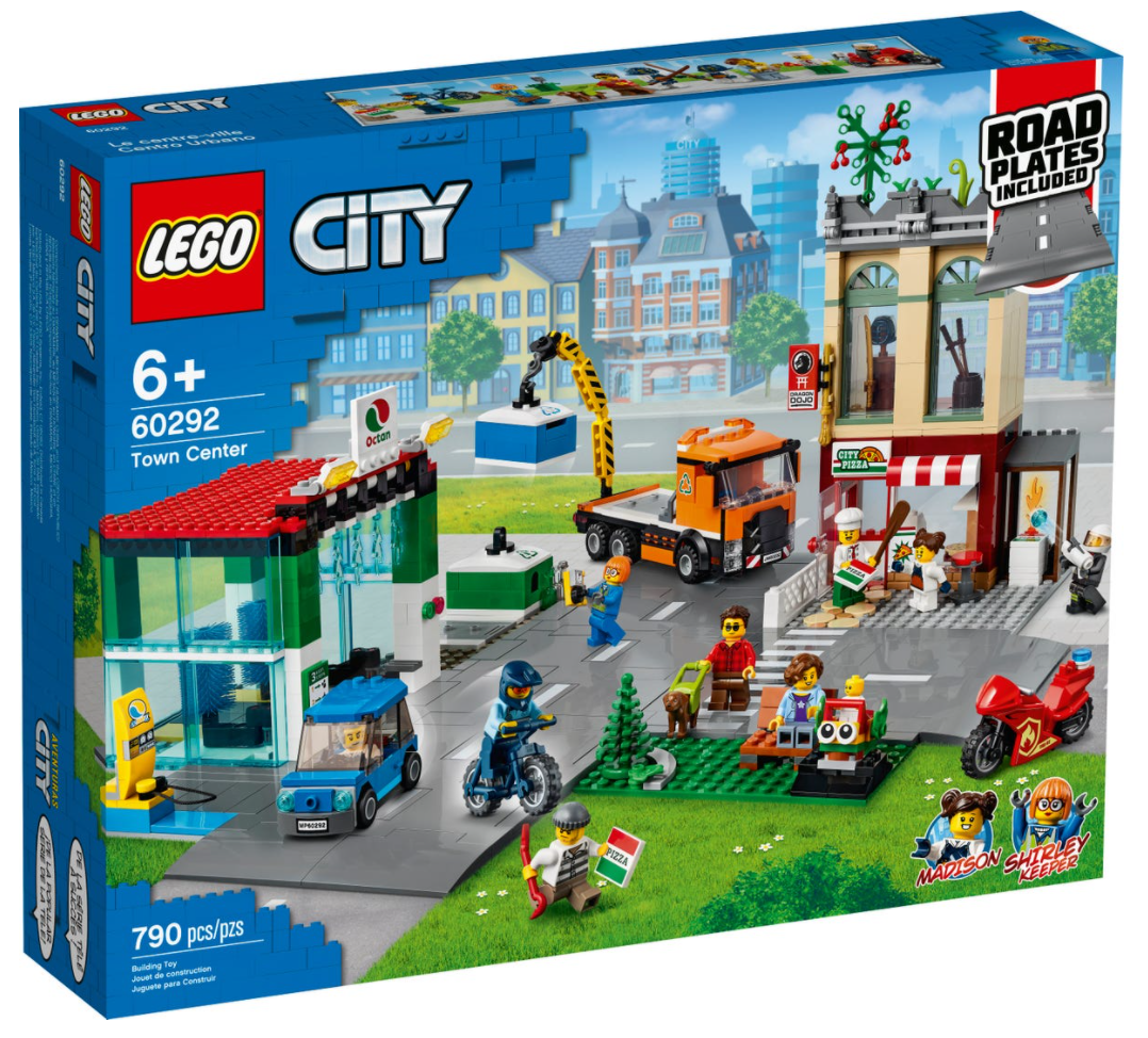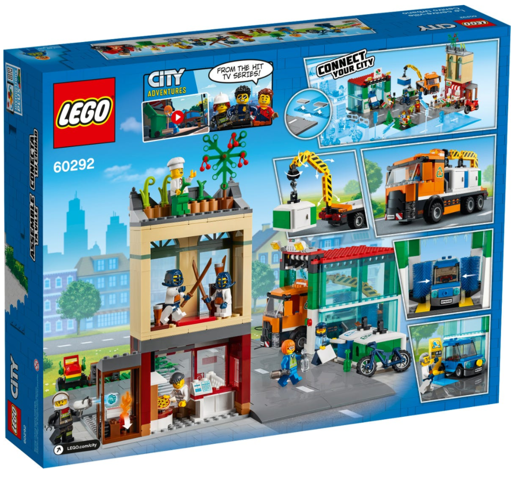 - W tym wyjątkowym zestawie LEGO® City Centrum miasta (60292) znajdziesz budynki z mnóstwem detali, fajne pojazdy i ciekawe postacie z serialu telewizyjnego LEGO City Adventures. Sześciolatki i starsze dzieci będą zachwycone!