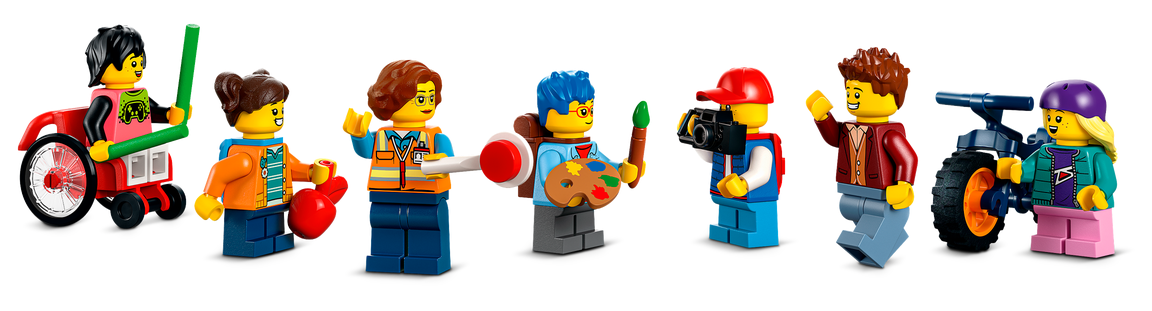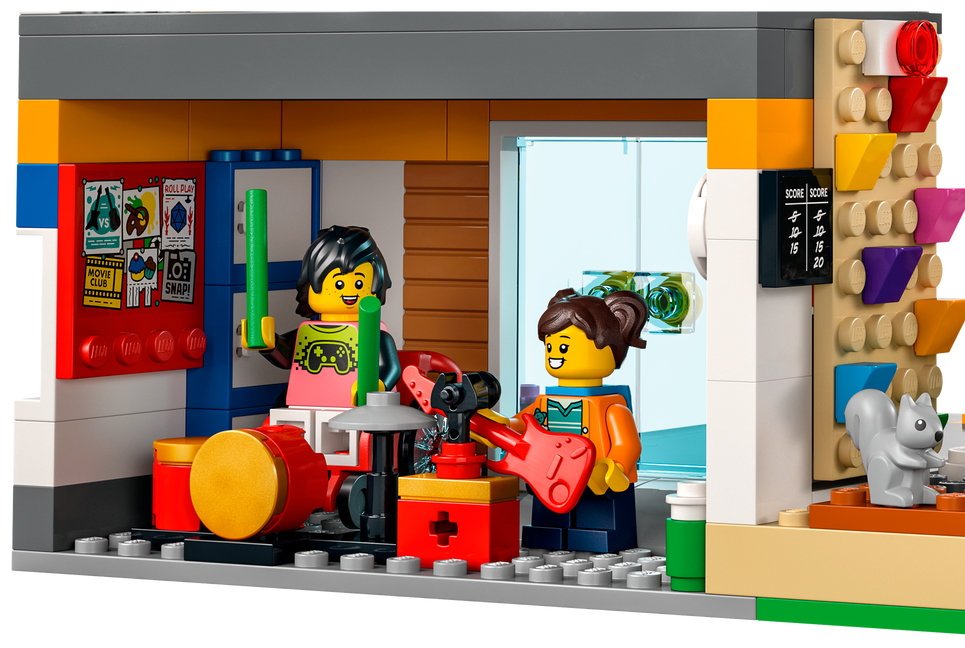- W komplecie akcesoria dla minifigurek LEGO® — ten zestaw ze szkołą zawiera również ciekawe akcesoria dla minifigurek, takie jak aparat fotograficzny, kaski, plecaki, gitara i pałeczki