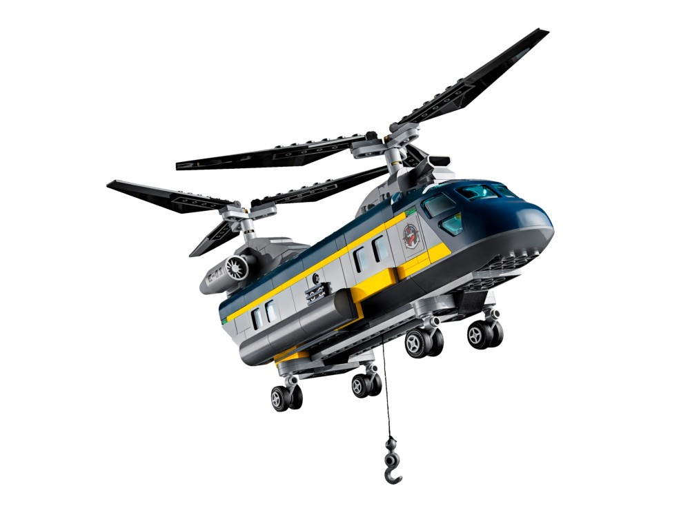 Uwaga! Badacze dna morskiego w łodzi głębinowej są atakowani przez rekina i potrzebują pomocy! Wejdź na pokład helikoptera do badań głębinowych, uruchom obydwa śmigła i szybko leć nad ocean. Po dotarciu na miejsce opuść linę wyciągarki, zaczep łódź głębinową i podążaj w kierunku bezpiecznego lądu. To był kolejny dzień pracy w helikopterze LEGO® City!