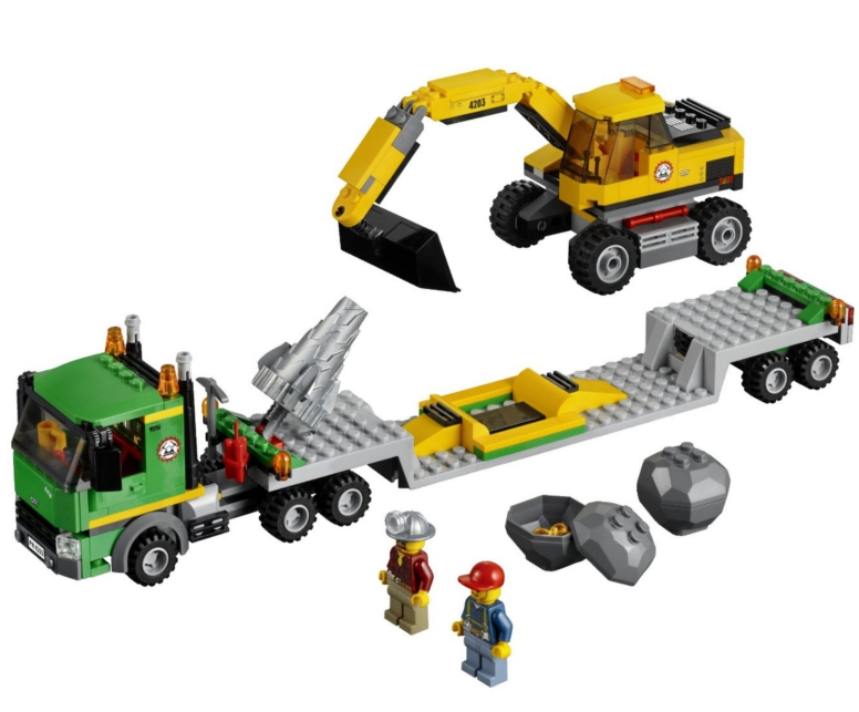 Przygotuj się na najcięższe prace w kopalni złota! Kiedy ciężkie prace w kopalni zaczynają się na poważnie, do akcji wkracza koparka. Niech nie zwiedzie was jej niepozorny wygląd! Możliwość zamontowania wielkiego wiertła czyni ją niemal najważniejszą maszyną w kopalni! A na miejsce pracy możną ją łatwo i szybko dostarczyć przy pomocy ciężarówki z platformą.