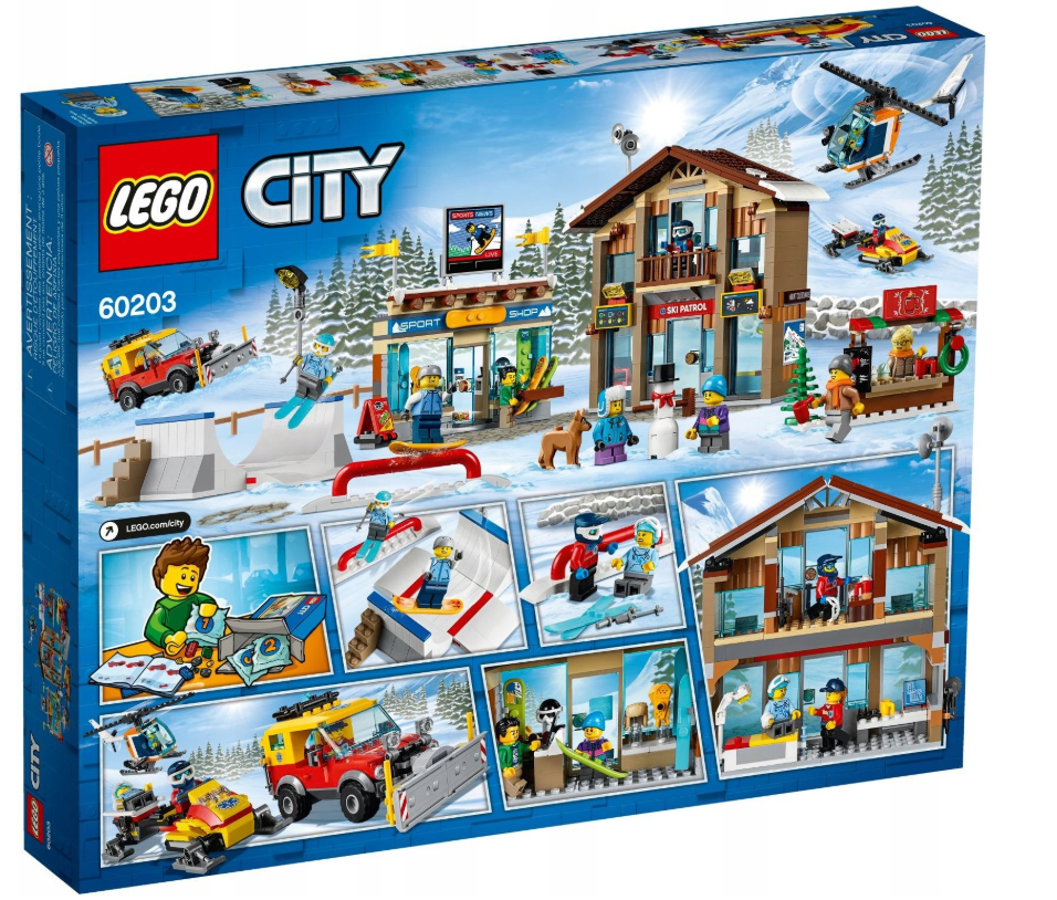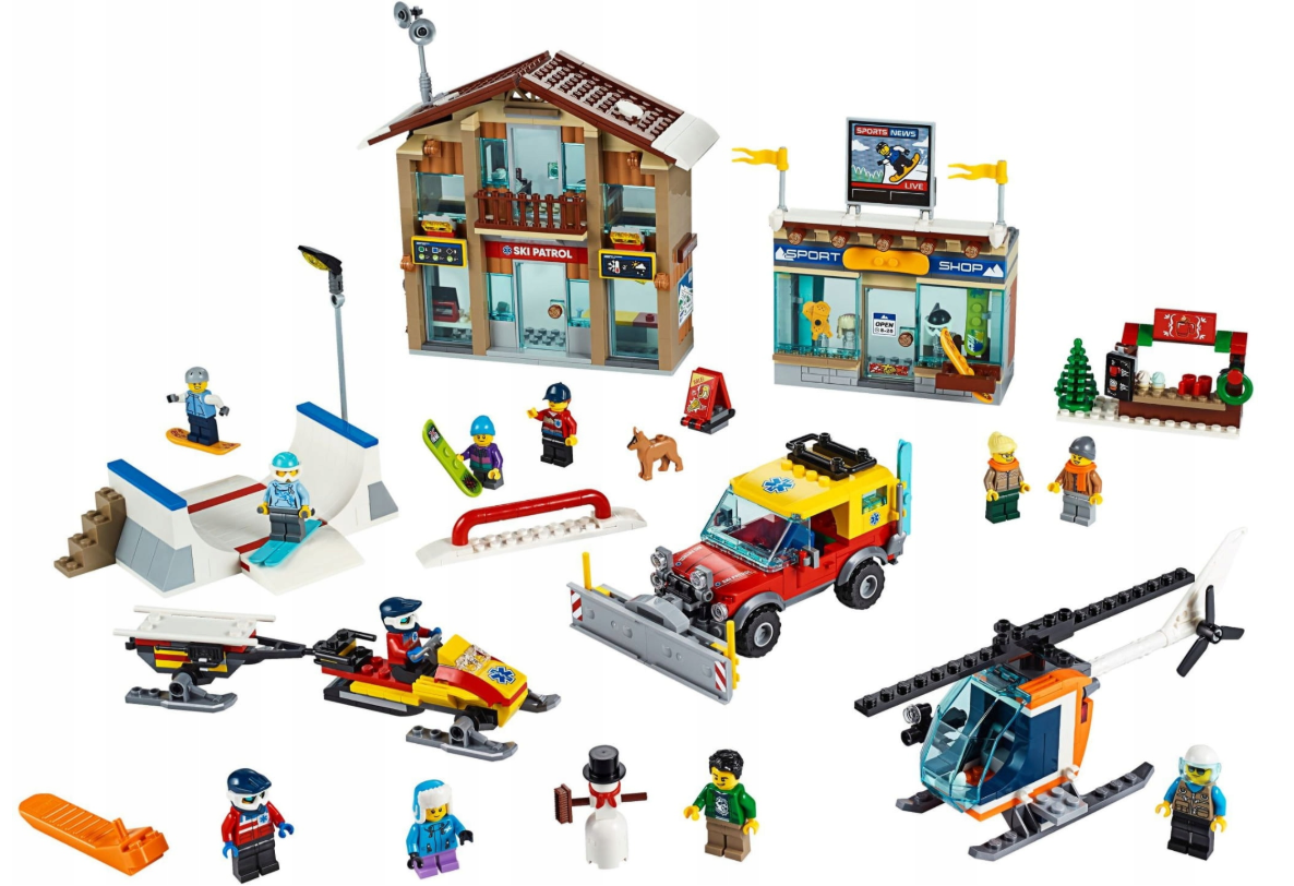 - W zestawie 11 minifigurek LEGO® City: troje członków służb ratowniczych, sprzedawca ze sklepu narciarskiego, pilot helikoptera, narciarz, snowboardzista, dwójka dzieci, sprzedawca ze stoiska z napojami i jego klient, a do tego figurka psa i złożona z klocków figurka bałwanka śniegowego.