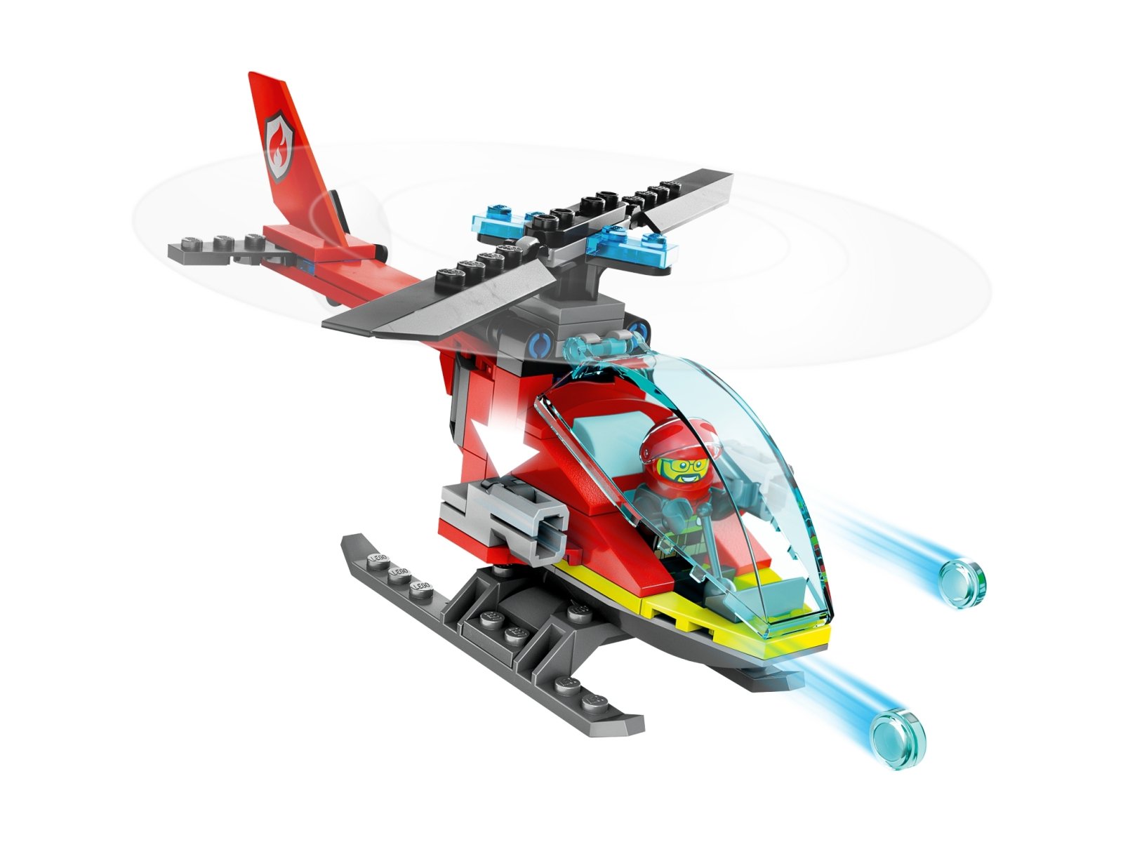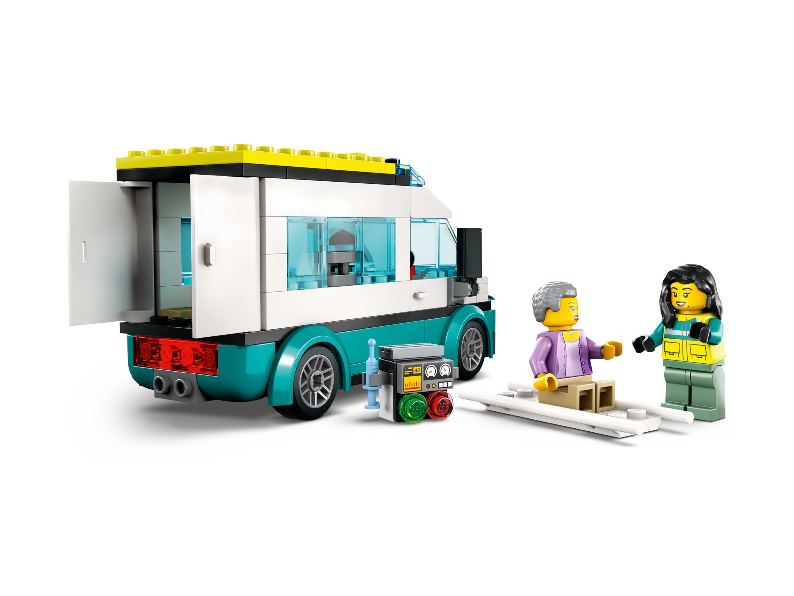 - Zabawka z pojazdami uprzywilejowanymi – dzieci mogą przyczepiać do pojazdów różne przedmioty, w tym sikawkę LEGO®, szperacz i aparat