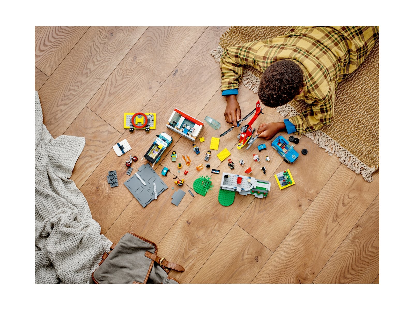 - Zabawa inspirowana prawdziwym życiem – w zestawach LEGO® City znajdziesz budynki, pojazdy i postacie, które zachęcają do pomysłowego odgrywania ról w realistycznych scenariuszach