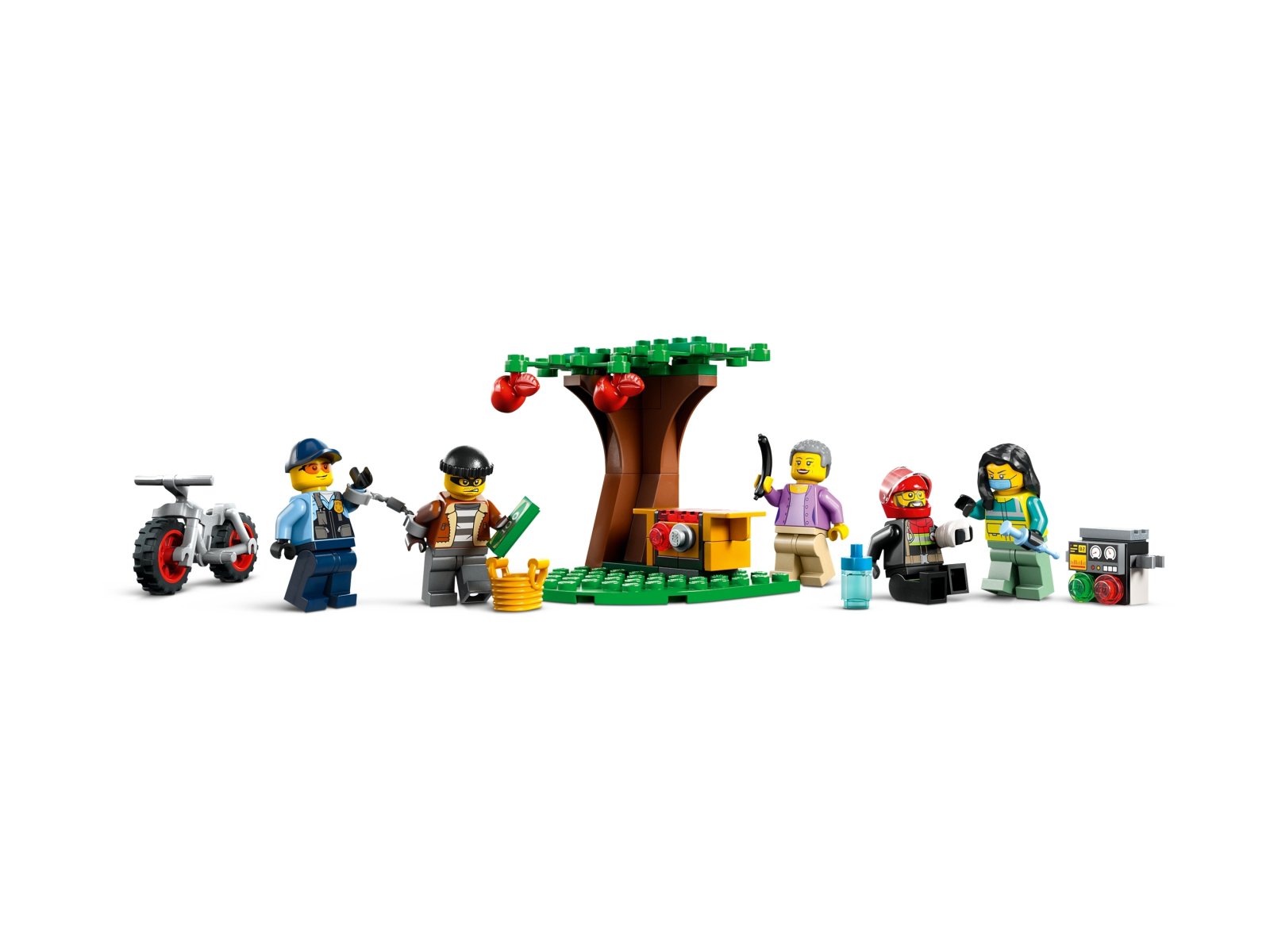 - 5 minifigurek - policjant, złodziejaszek, ratownik medyczny, babcia, pilot śmigłowca,