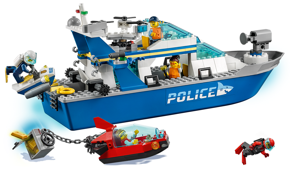 - Zestaw LEGO® City Policyjna łódź patrolowa (60277) doskonale sprawdzi się jako prezent na Boże Narodzenie, urodziny lub inną okazję dla pięciolatków i starszych dzieci. Do jej zbudowania wystarczą podstawowe umiejętności.