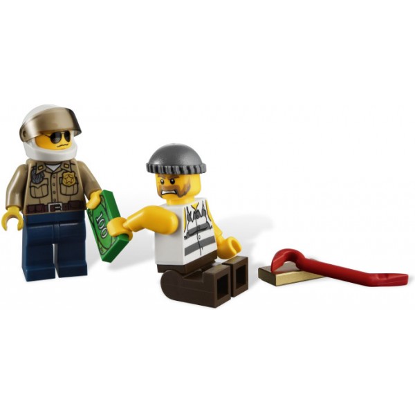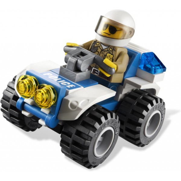 Uwaga strażnicy, trwa pościg w Lego City! Przestępca ucieka ciężkim wozem terenowym ze skradzionymi pieniędzmi i sztabką złota! Na szczęście Straż Leśna jest wyposażona w najnowocześniejsze pojazdy. Jeden ze strażników lasu wyrusza w pościg na swoim quadzie!