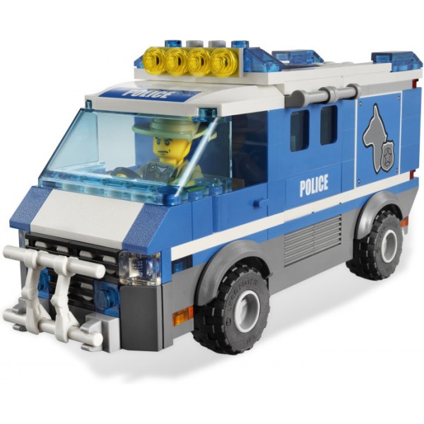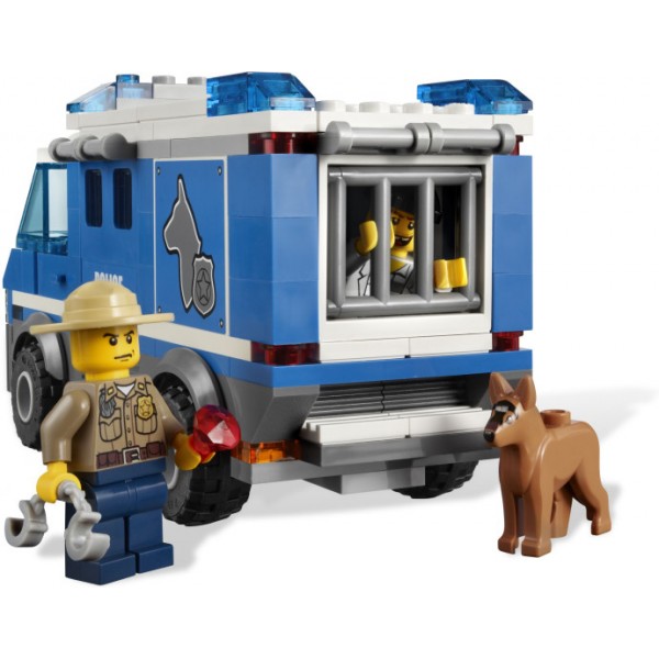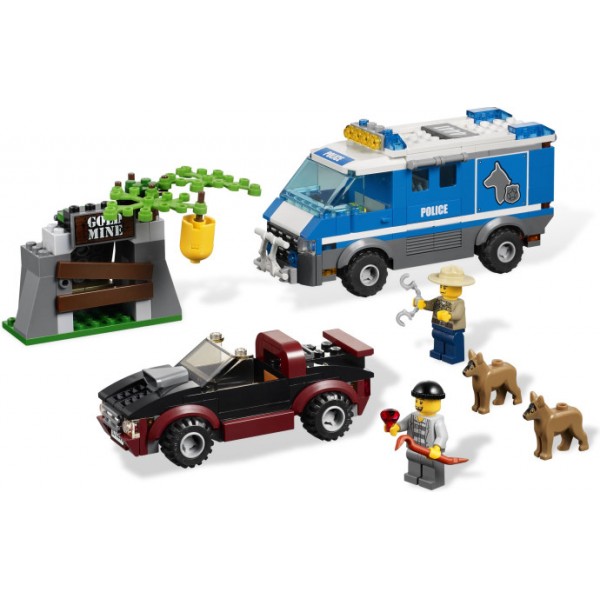 Przestępca włamał się do opuszczonej kopalni złota Lego City! Na szczęście z leśnego posterunku wyruszył patrol policji z psami! Wypuść psy z ciężarówki i pozwól im wytropić uciekającego złodziejaszka!