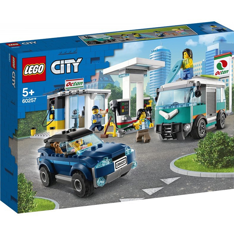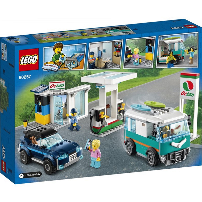 - Wspaniały zestaw do budowania dla dzieci, które uwielbiają zabawę w udawanie. Zestaw LEGO® City 60257 zawiera kilka modeli, takich jak stacja ładowania dla samochodów elektrycznych i dystrybutor paliwa dla samochodów benzynowych, oraz ciekawe postacie i pieska chihuahua.