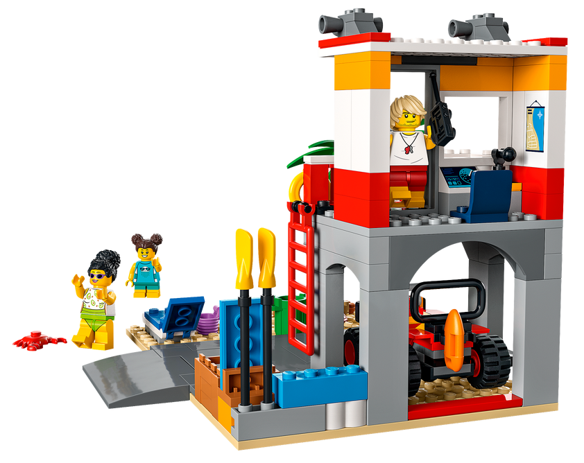 - Specjalnie do pomysłowej zabawy — piętrowe stanowisko ratownika zawiera mnóstwo elementów zachęcających do zabawy, w tym centrum dowodzenia z warsztatem, teleskopem i głośnikami oraz zabawkowego quada