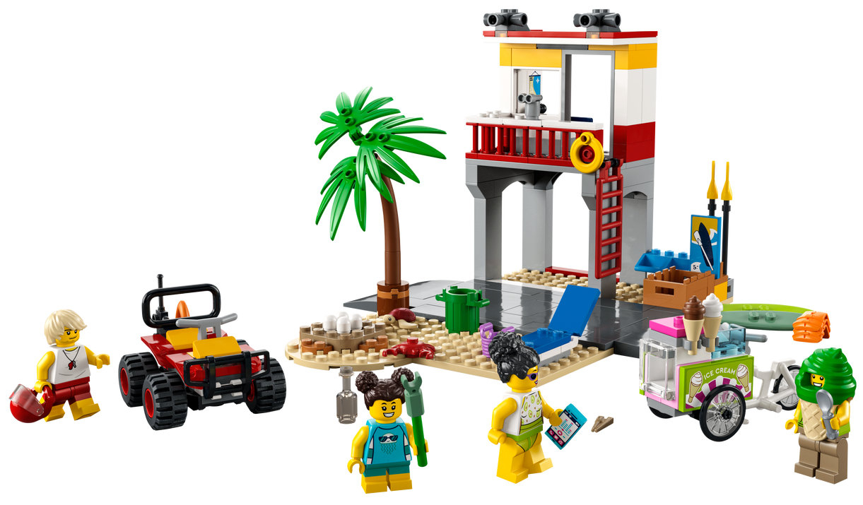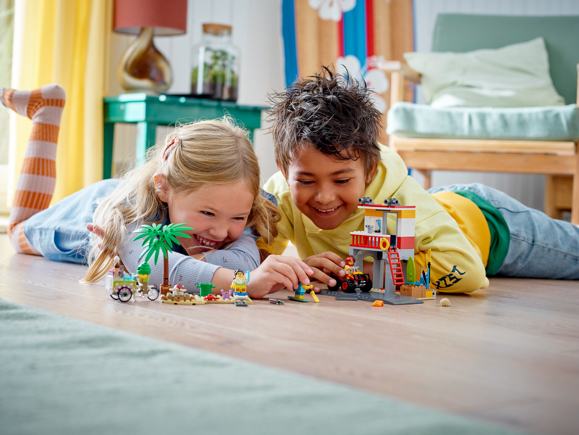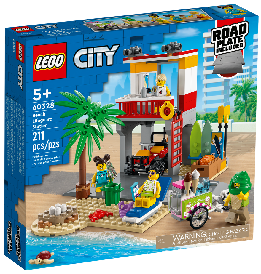 - Plażowy zestaw dla pięciolatków i starszych dzieci — z zabawką konstrukcyjną LEGO® City Stanowisko ratownicze na plaży (60328) nigdy nie zabraknie Ci słońca — ani okazji do pomysłowej rozrywki