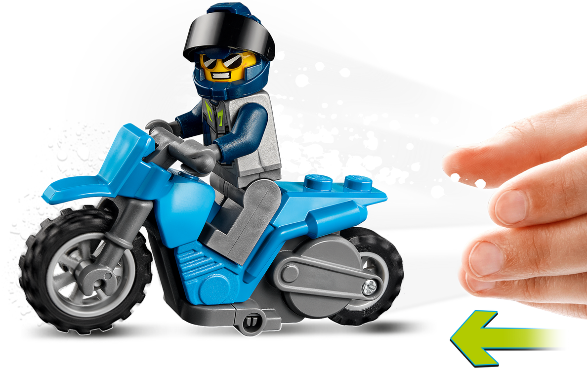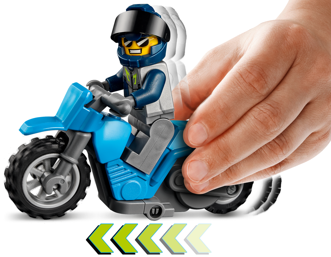 Z zestawami LEGO City Stuntz dzieci znajdą się w samym środku akcji. Do dyspozycji mają motocykle napędzane kołem zamachowym, realistyczne konstrukcje oraz fajne postacie, które inspirują do pomysłowego odgrywania ról opartych na rzeczywistych sytuacjach. A żeby pokaz kaskaderski był jeszcze bardziej fenomenalny, możesz połączyć kilka zestawów z emocjonującej serii LEGO City Stuntz!