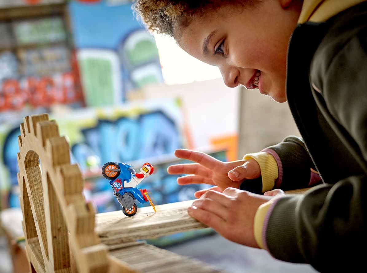 Z zestawami LEGO City Stuntz dzieci znajdą się w samym środku akcji. Do dyspozycji mają motocykle kaskaderskie napędzane kołem zamachowym, fajne pojazdy, realistyczne konstrukcje oraz ciekawe postacie, które inspirują do pomysłowego odgrywania ról opartych na rzeczywistych sytuacjach. A żeby pokaz kaskaderski był jeszcze bardziej fenomenalny, możesz połączyć kilka zestawów z emocjonującej serii LEGO City Stuntz!