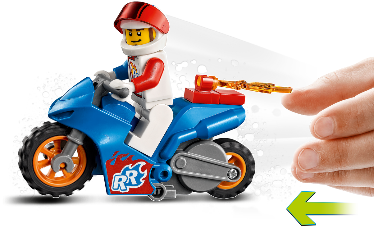 - Zestaw LEGO® City Rakietowy motocykl kaskaderski jest doskonałym prezentem na Gwiazdkę, urodziny lub z innej okazji dla miłośników pokazów kaskaderskich w wieku od 5 lat.