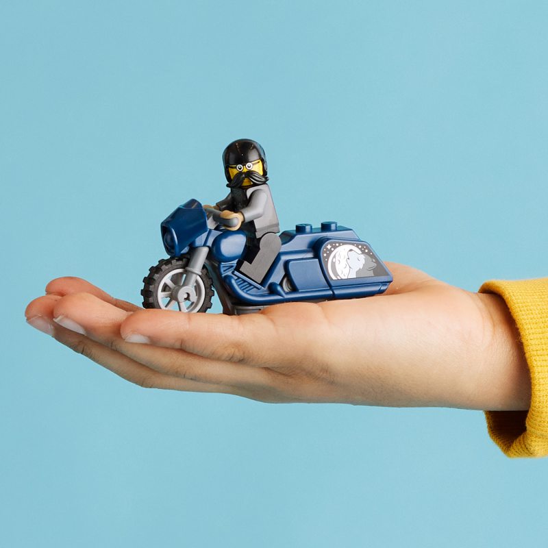 - Zbierz i połącz — motocykl można połączyć z innymi zestawami z serii LEGO® City Stuntz, by urozmaicić zabawę w pokazy kaskaderskie