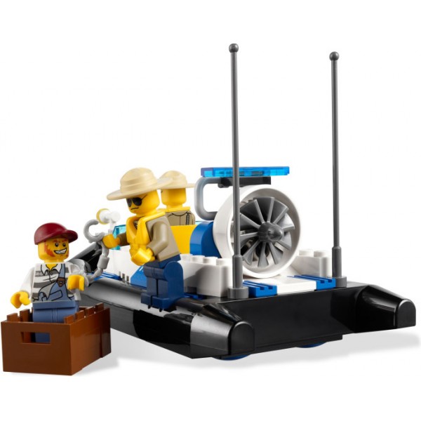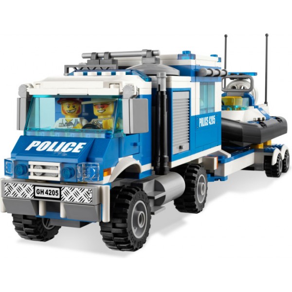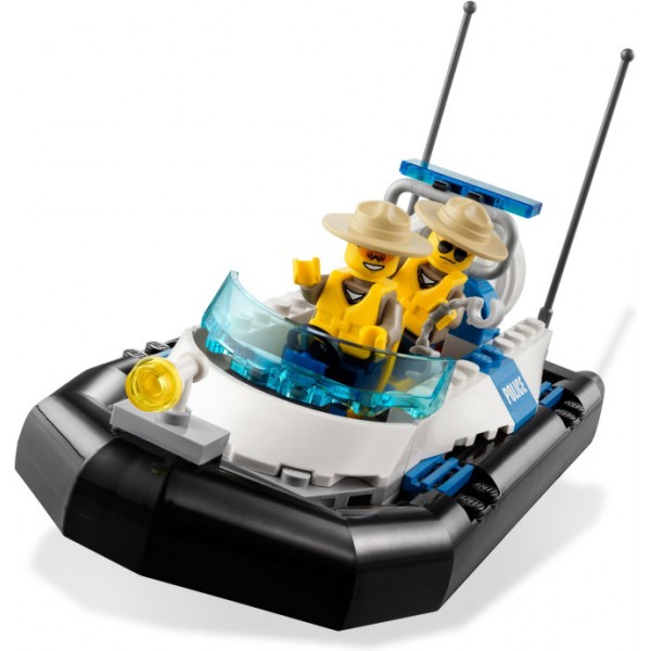 Zlokalizuj przestępców dzięki mobilnemu centrum dowodzenia z serii Lego City! Pełne zaawansowanej elektroniki i sprzętu pozwala koordynować działania reszty policjantów, a w razie potrzeby dzięki mocnemu silnikowi i terenowym oponom może służyć do pościgów! Tym razem policja dostała zgłoszenie o złodzieju uciekającym na tratwie. Na szczęście terenowe centrum dowodzenia ma na wyposażeniu szybki ponton motorowy. Odstaw uciekiniera do aresztu!