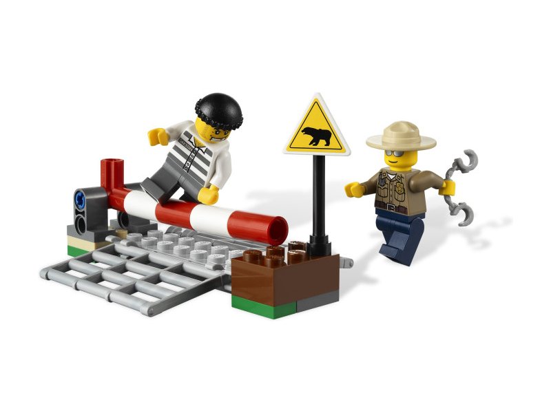 Funkcjonariusz Straży Leśnej Lego City zauważa złodzieja, który próbuje uciec do lasu. Na szczęście terenowy samochód patrolowy może łatwo przedzierać się przez najtrudniejsze ścieżki! Dogoń go wozem patrolowym i załóż mu kajdanki, zanim przeskoczy szlaban i ucieknie.