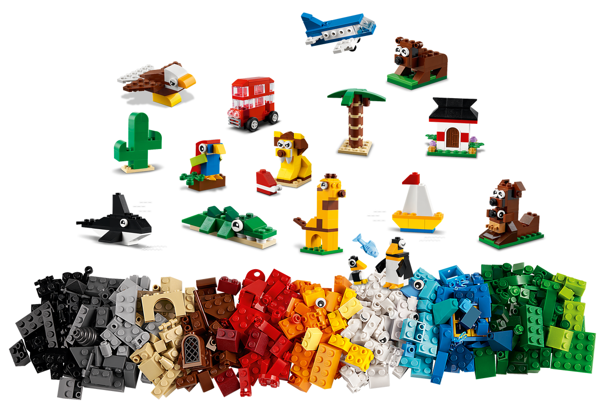 - W komplecie 950 oryginalnych klocków LEGO®, z których dzieci mogą zbudować wszystko, co tylko sobie wymarzą. Klocki i elementy można także łączyć z innymi zestawami LEGO, by zabawa byłajeszcze lepsza.