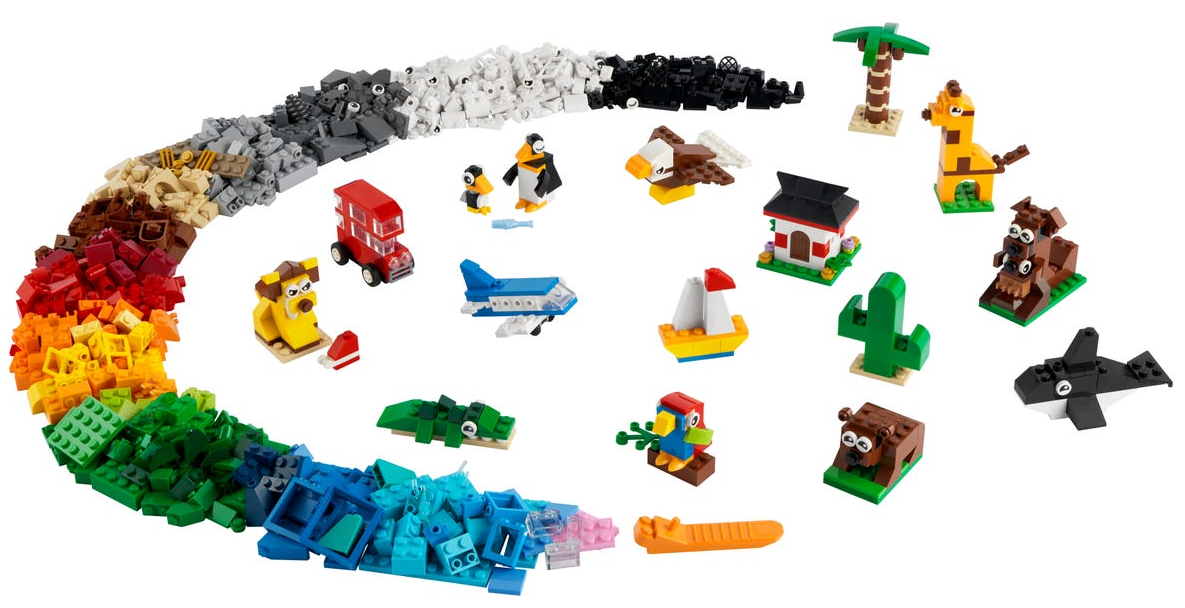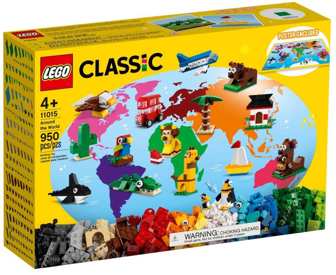 - Zestaw LEGO® Classic Dookoła świata (11015) z 15 inspirującymi pomysłami na modele przybliży czterolatkom i starszym dzieciom najbardziej znane zwierzęta i obiekty z całego świata.
