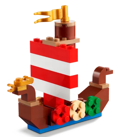 - Co jest w środku? — dzieci znajdą w zestawie wszystko, czego potrzeba do zbudowania statku wikingów, żółtego okrętu podwodnego, podwodnego drona, konika morskiego, wieloryba i żółwia. W komplecie są też dwie torebki z dodatkowymi klockami LEGO®